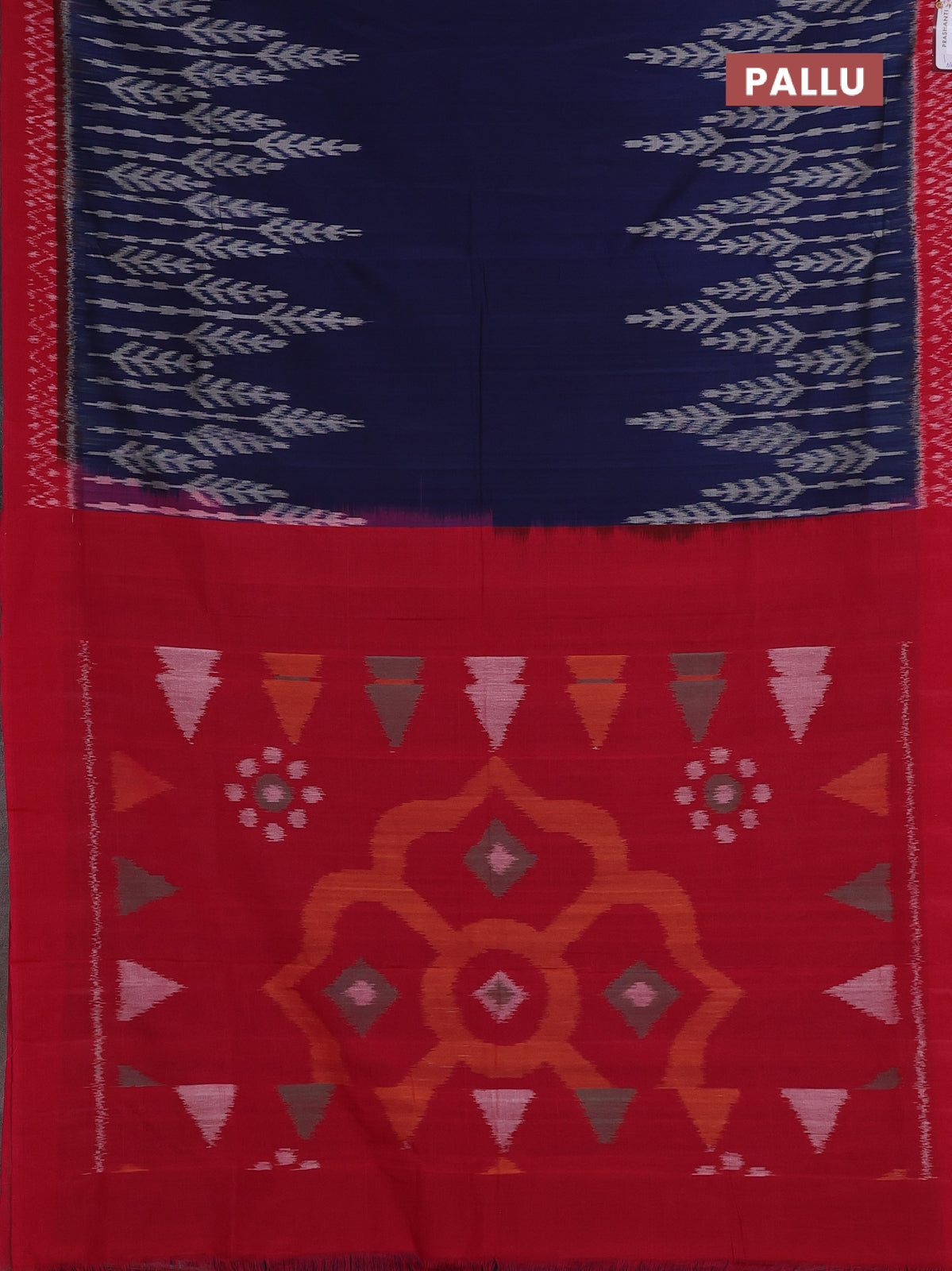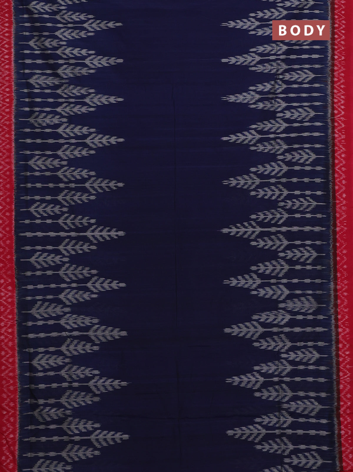 Ikat cotton saree peacock blue and red with plain body and long ikat woven border