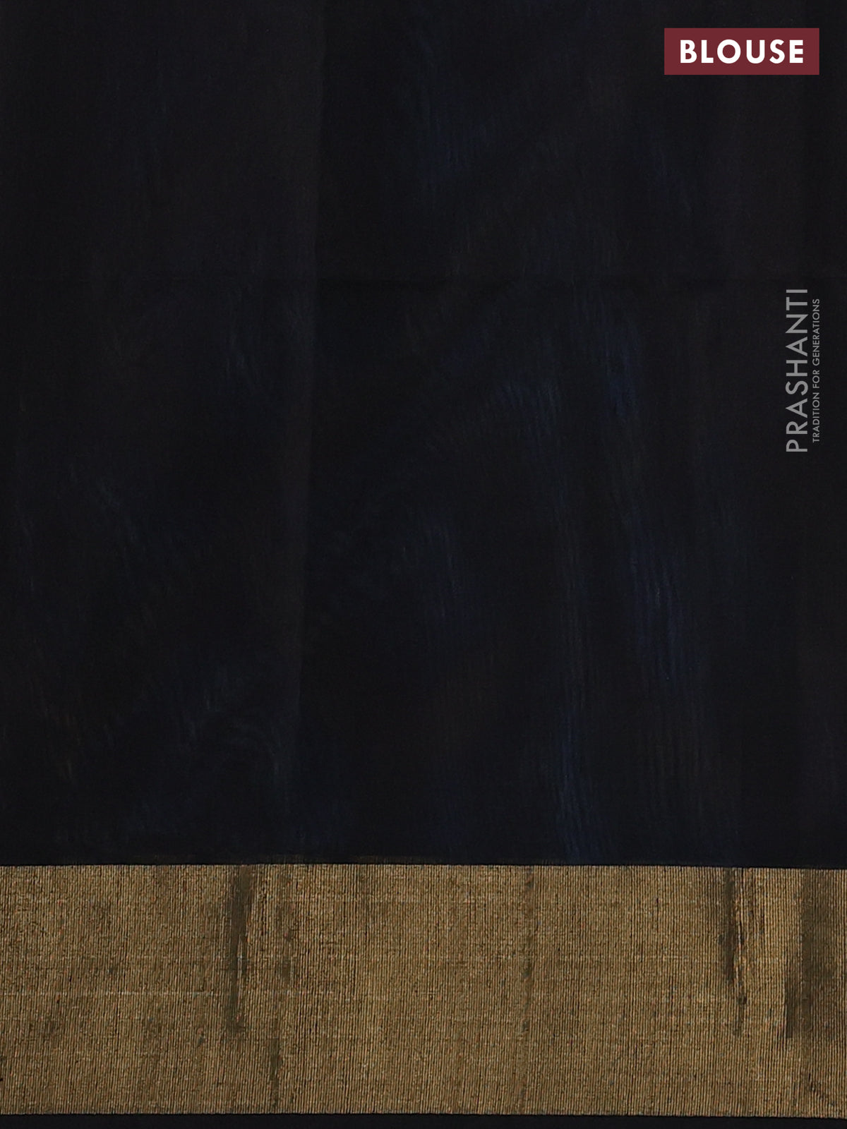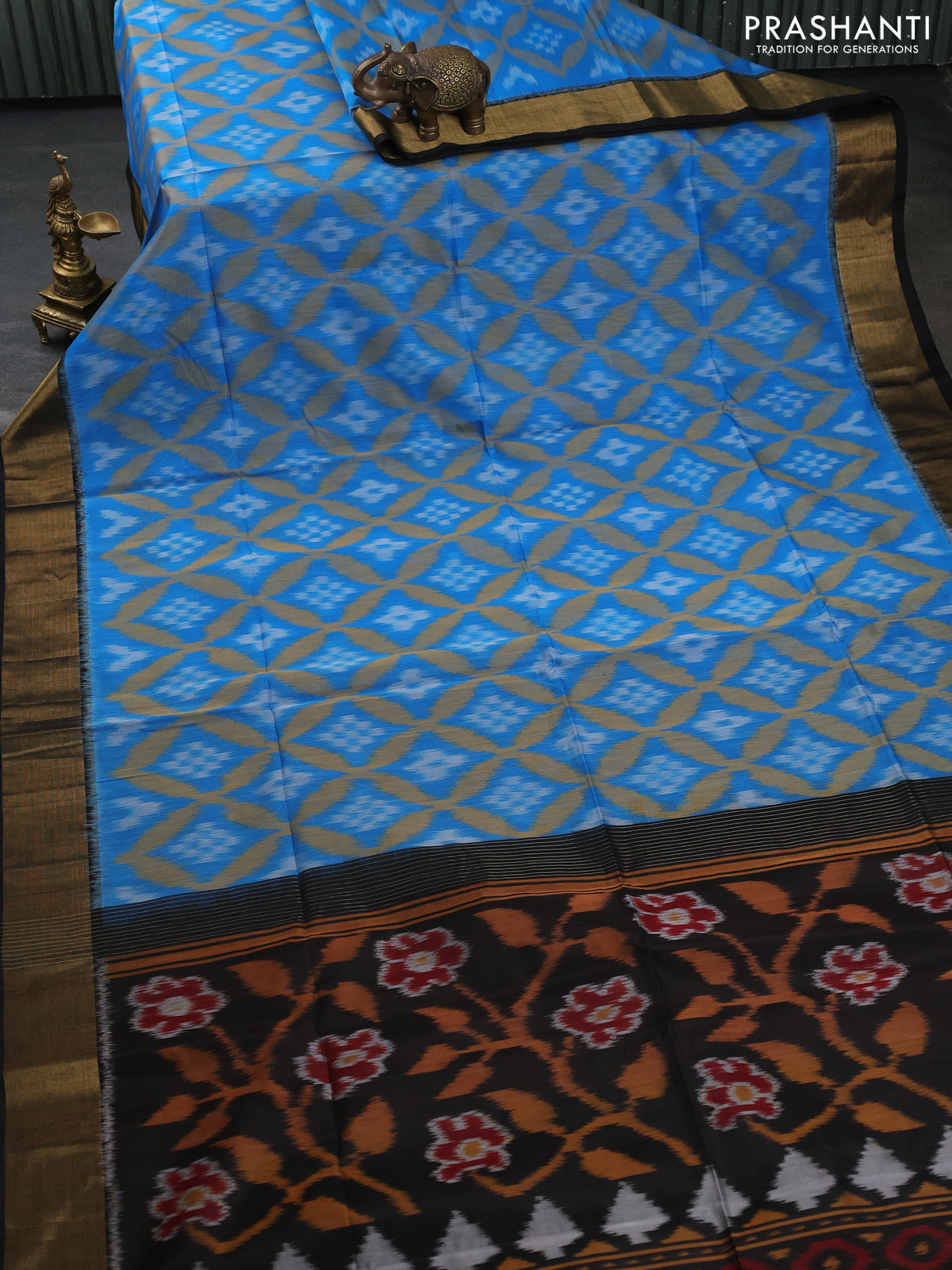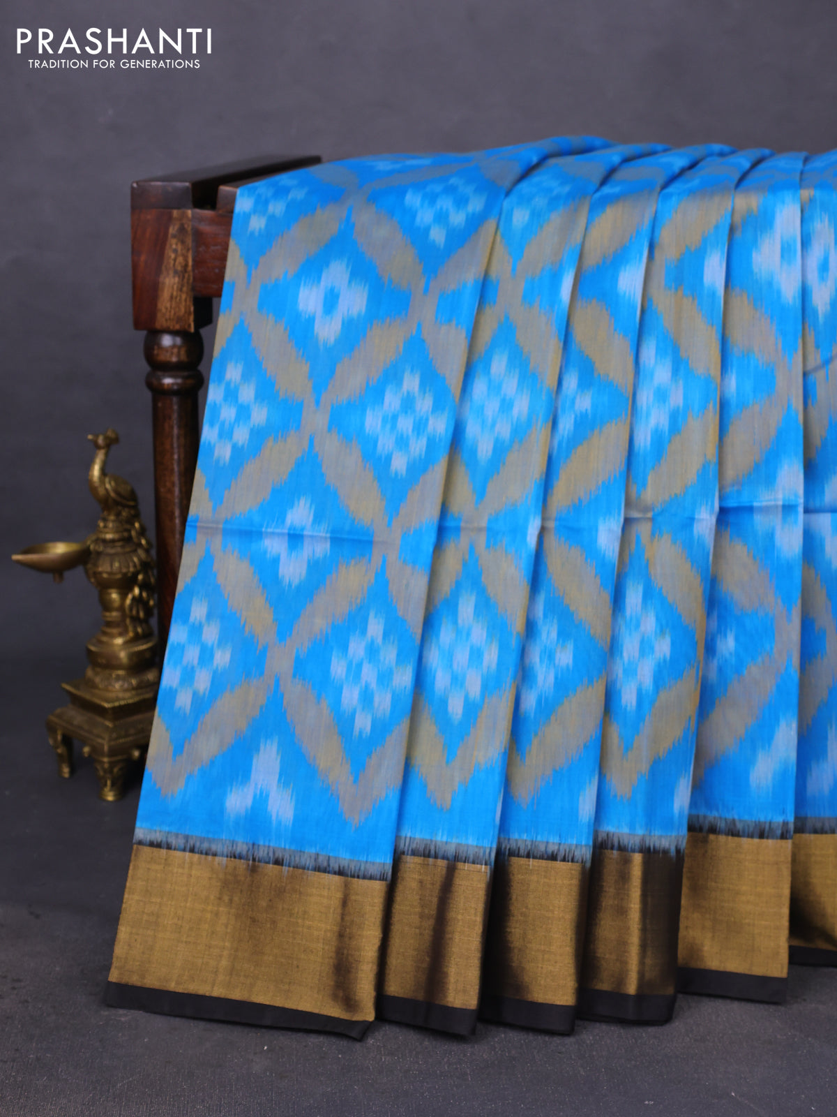 Ikat silk cotton saree cs blue and black with allover ikat weaves and zari woven border