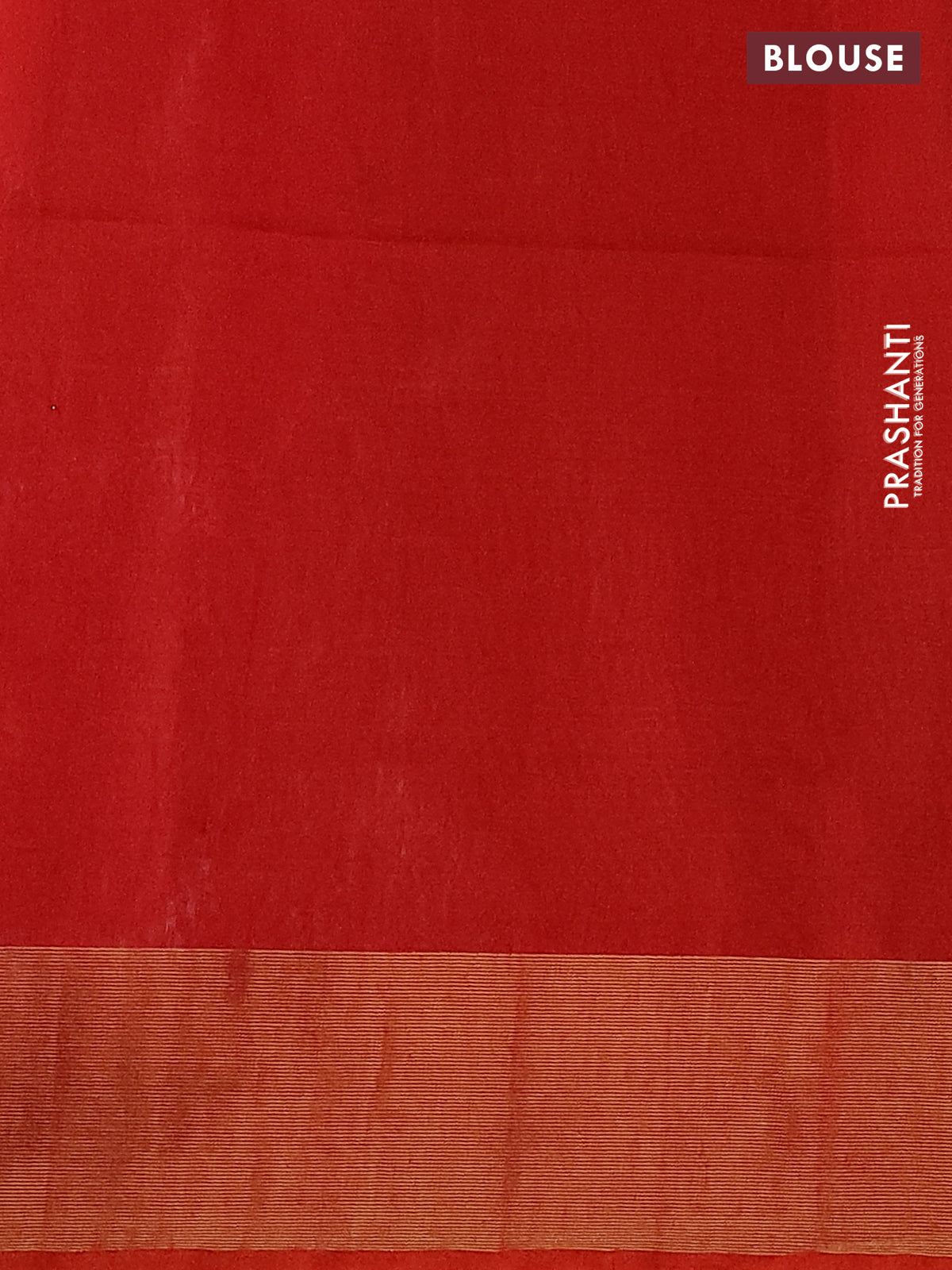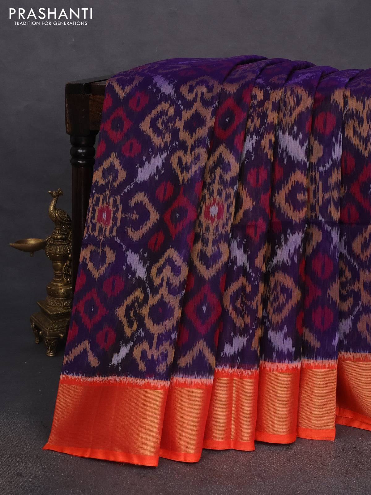 Ikat silk cotton saree dark blue and reddish orange with allover ikat weaves and zari woven border