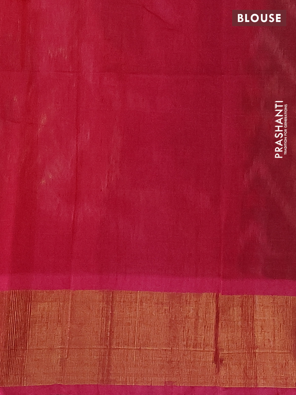 Ikat silk cotton saree green and pink with allover ikat weaves and zari woven border