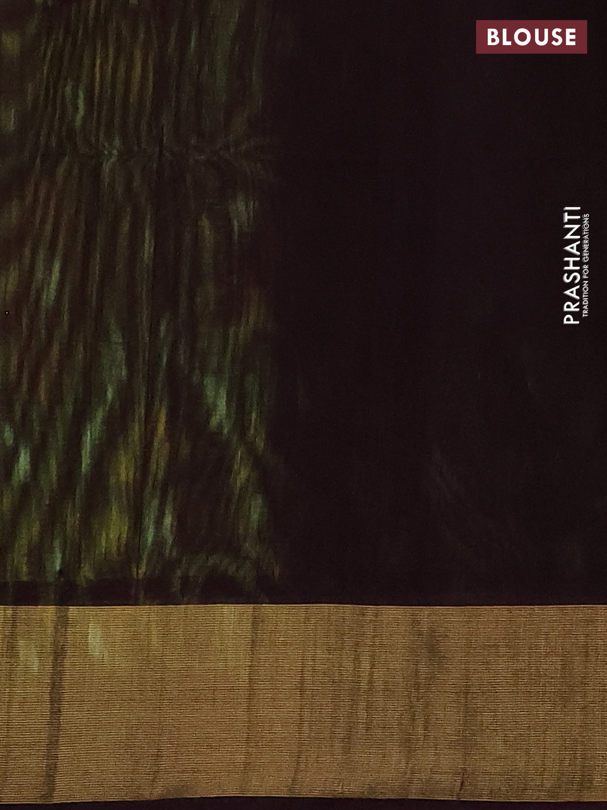 Ikat silk cotton saree green and wine shade with allover ikat weaves and zari woven border