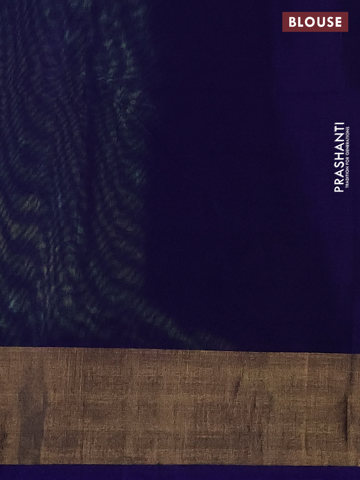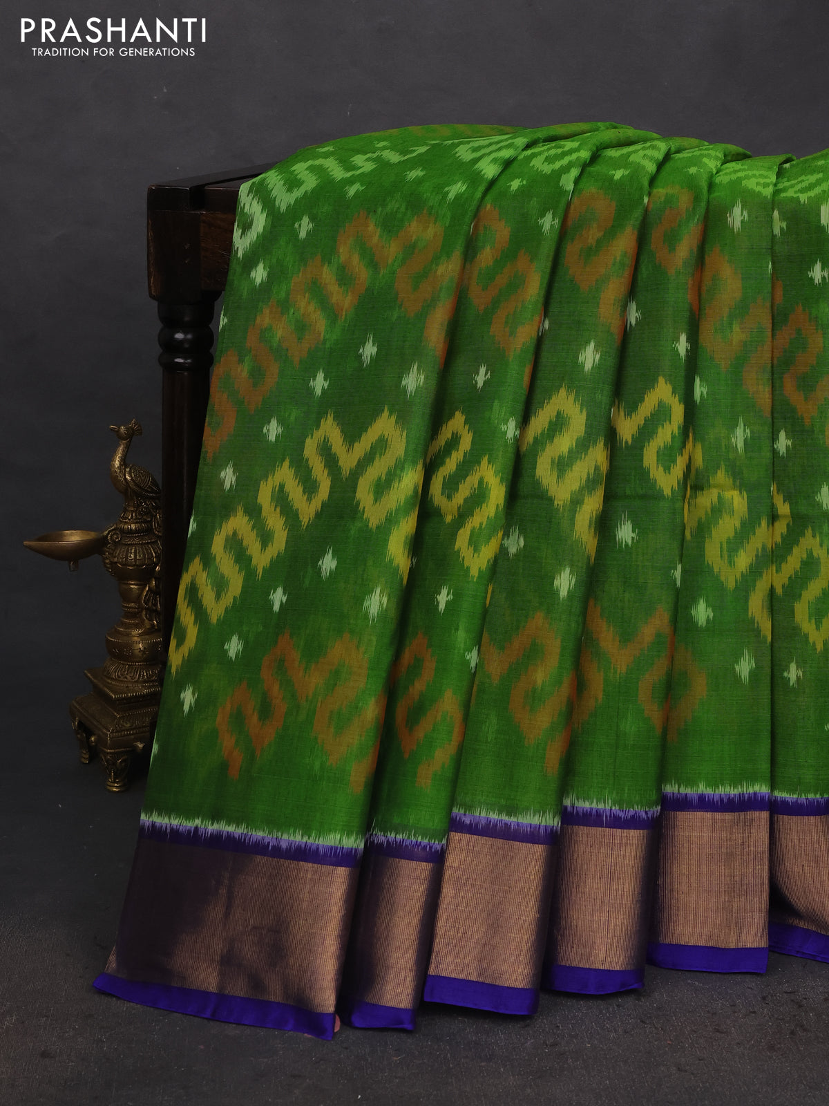 Ikat silk cotton saree light green and blue with allover ikat weaves and zari woven border