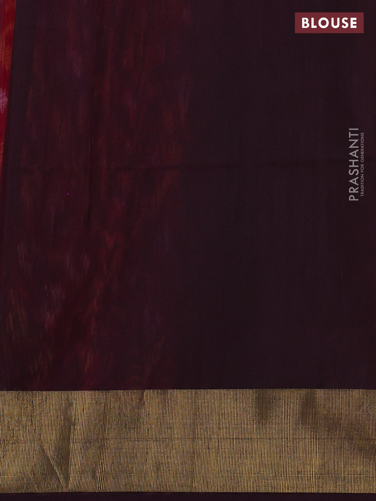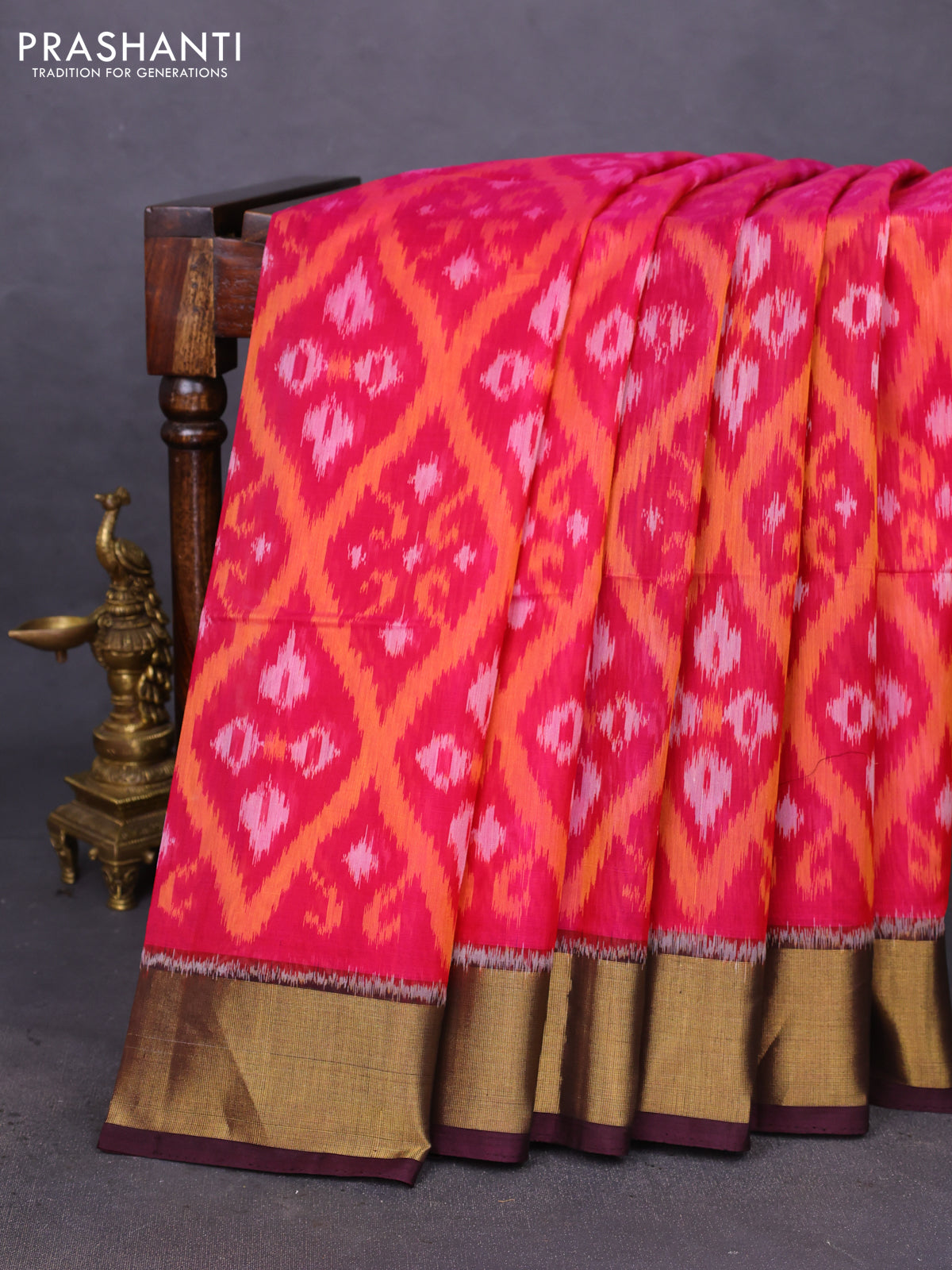 Ikat silk cotton saree pink and wine shade with allover ikat weaves and zari woven border