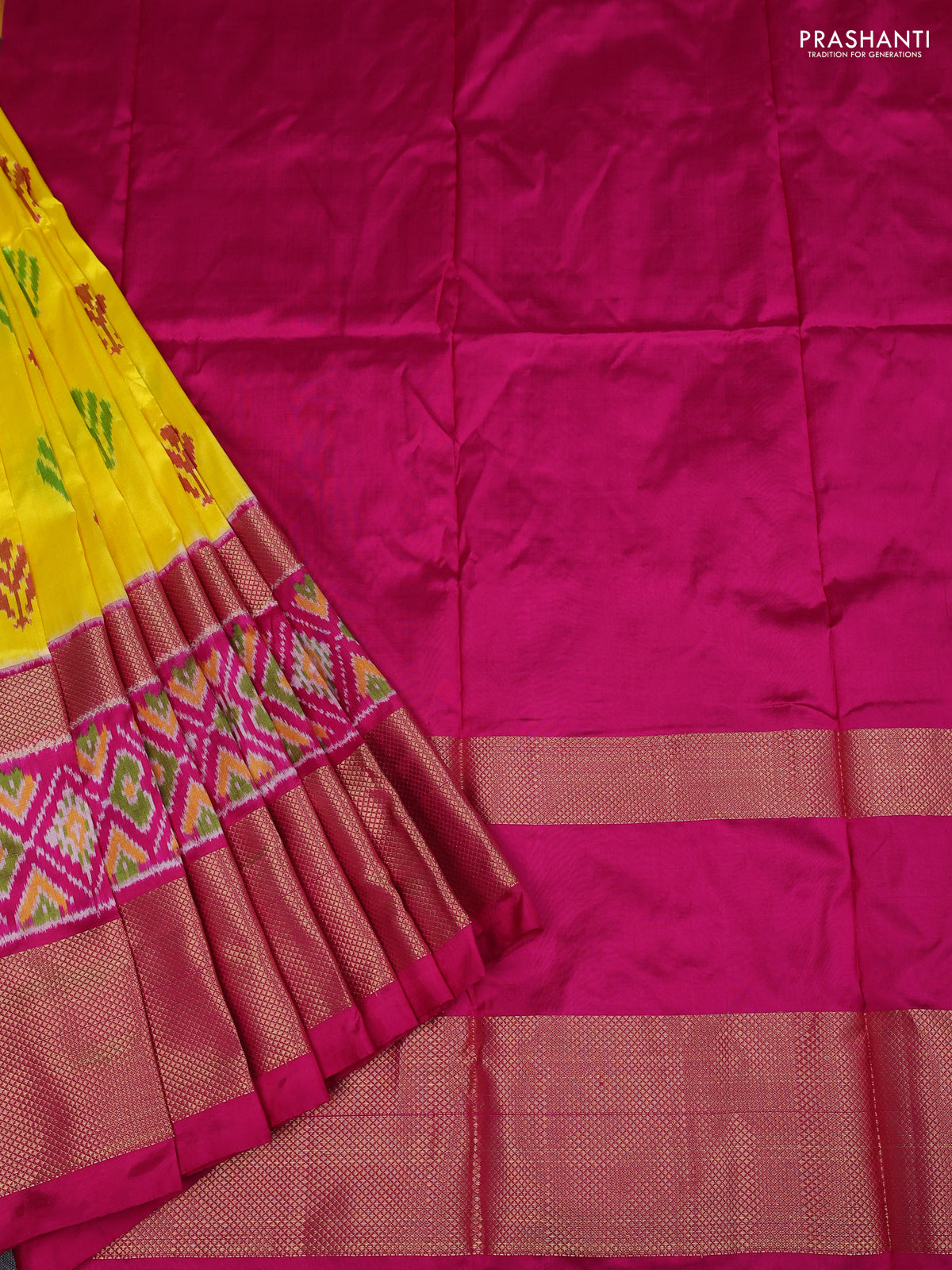 Ikat silk kids lehenga lime yellow and pink with ikat butta weaves and long ikat woven zari border