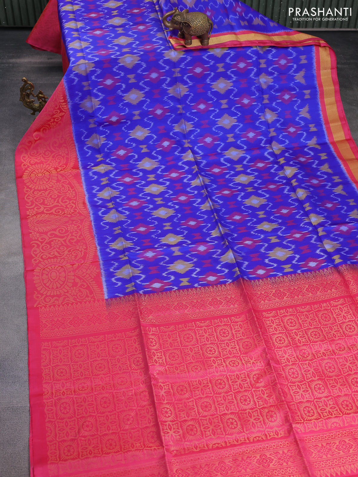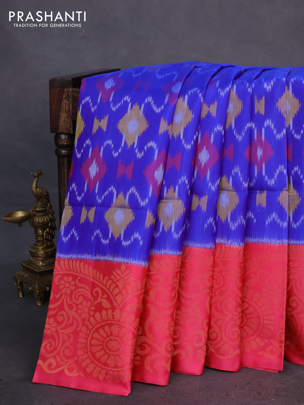 Ikat soft silk saree royal blue and pink with allover ikat weaves and long zari woven border