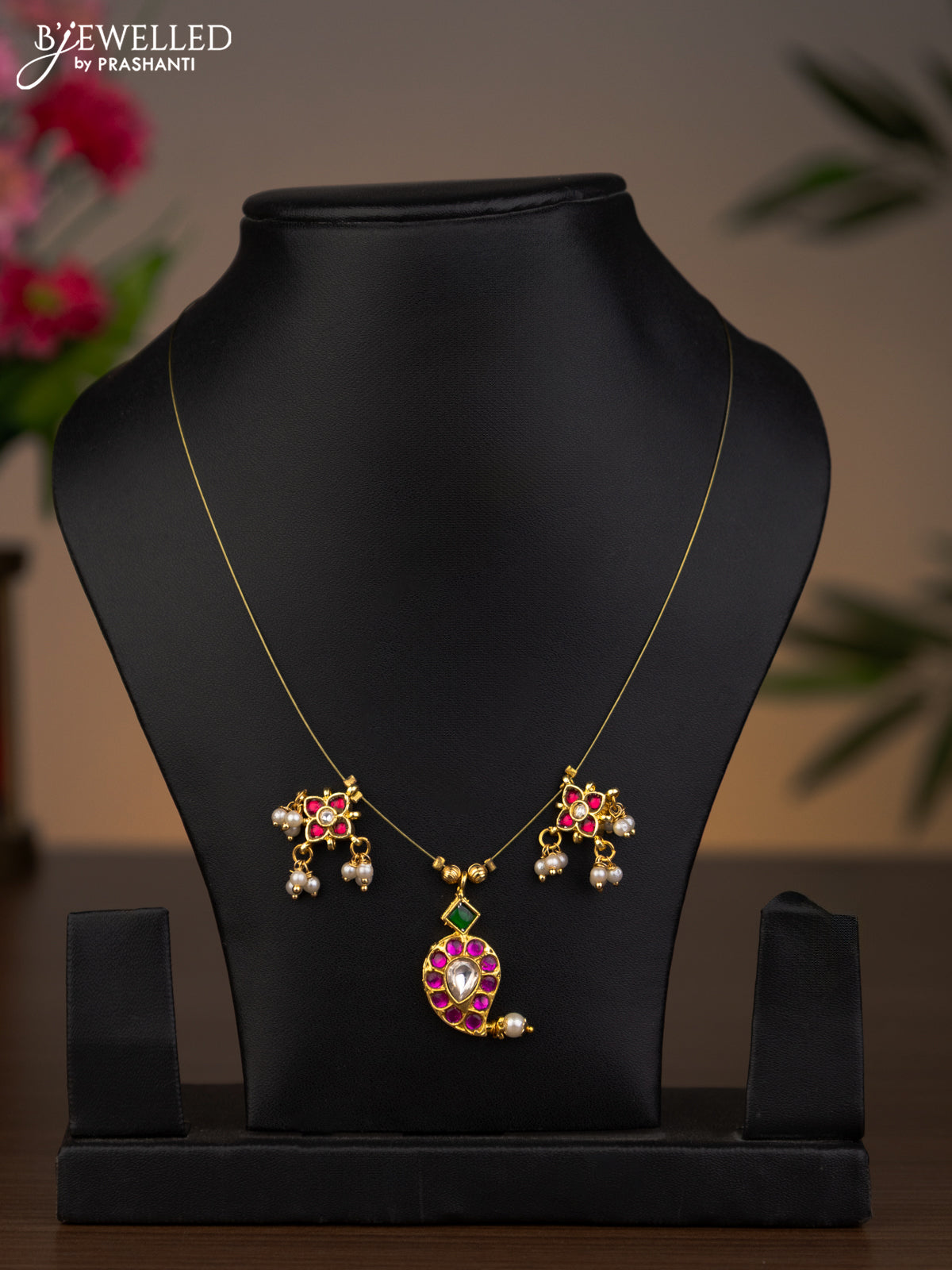 Invisible chain manga pendant with jadau kundan stones and pearl hangings without earrings