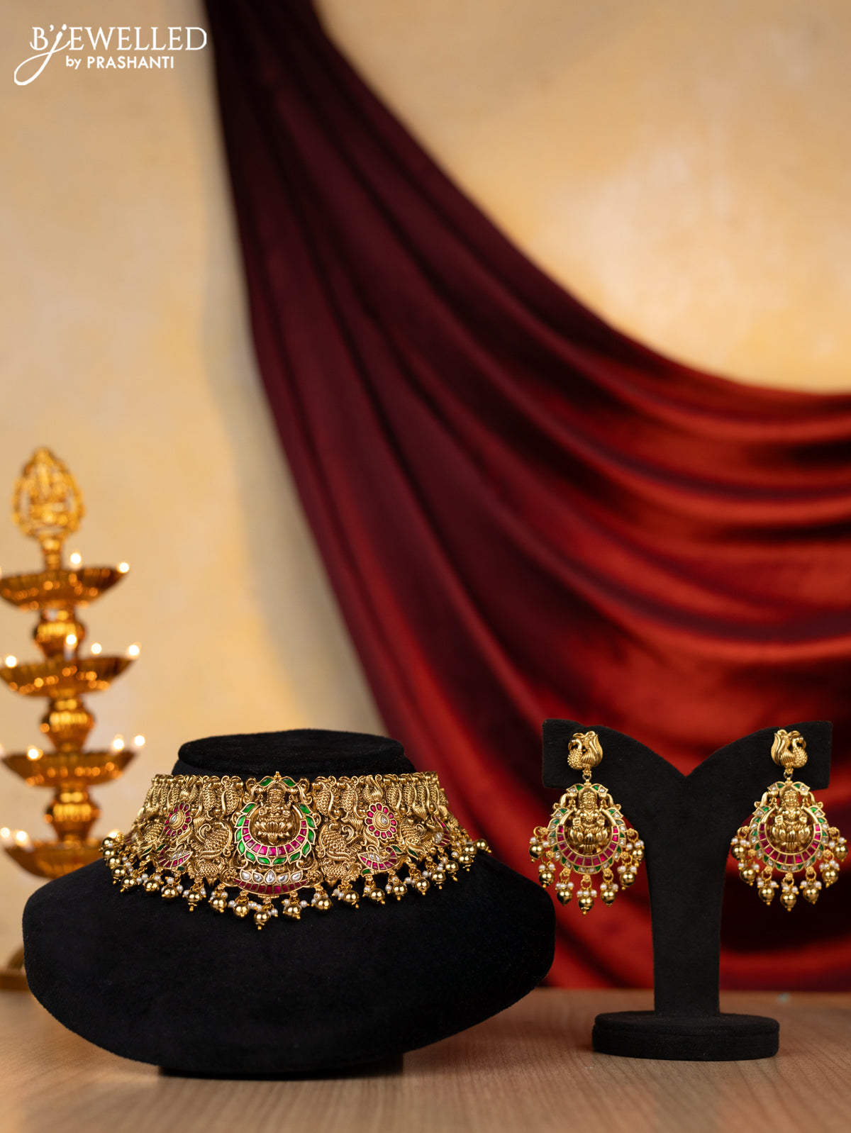 Jadau Choker lakshmi design with jadau kundan stones with natural beads hanging