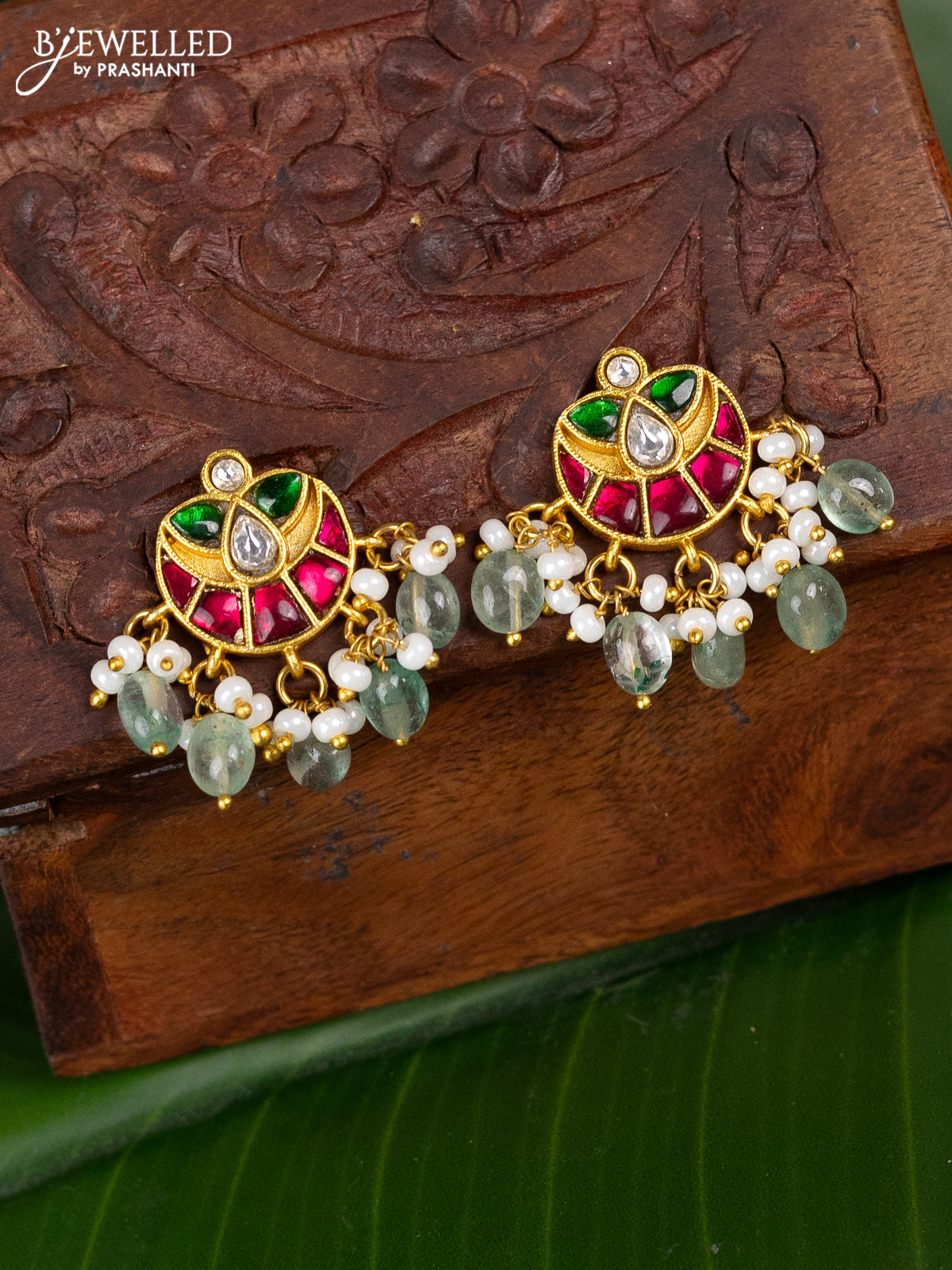 Jadau earrings with jadau kundan stones and pearl & mint green beads hanging