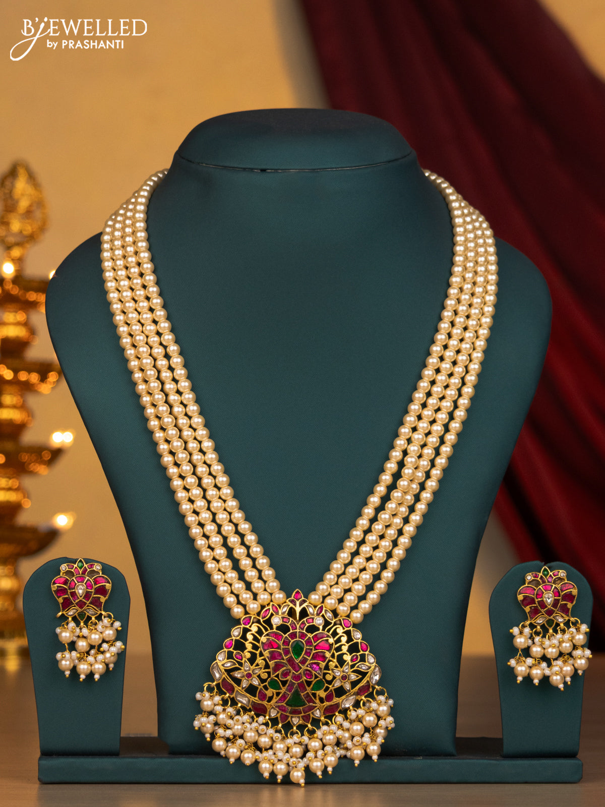 Jadau multilayer pearl necklace with gandaberunda with jadau kundan stones and pearl hangings