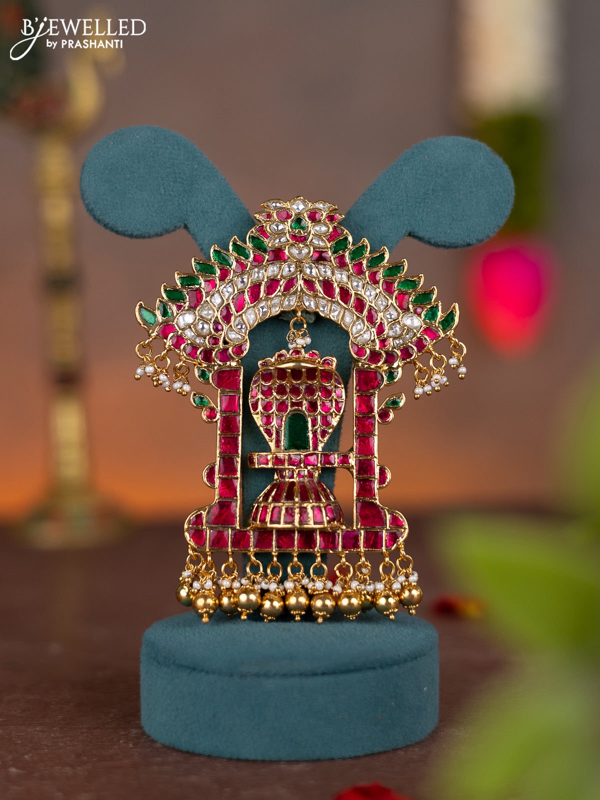 Jadau pendant shivlinga design with jadau kundan stones and pearl & golden beads hanging