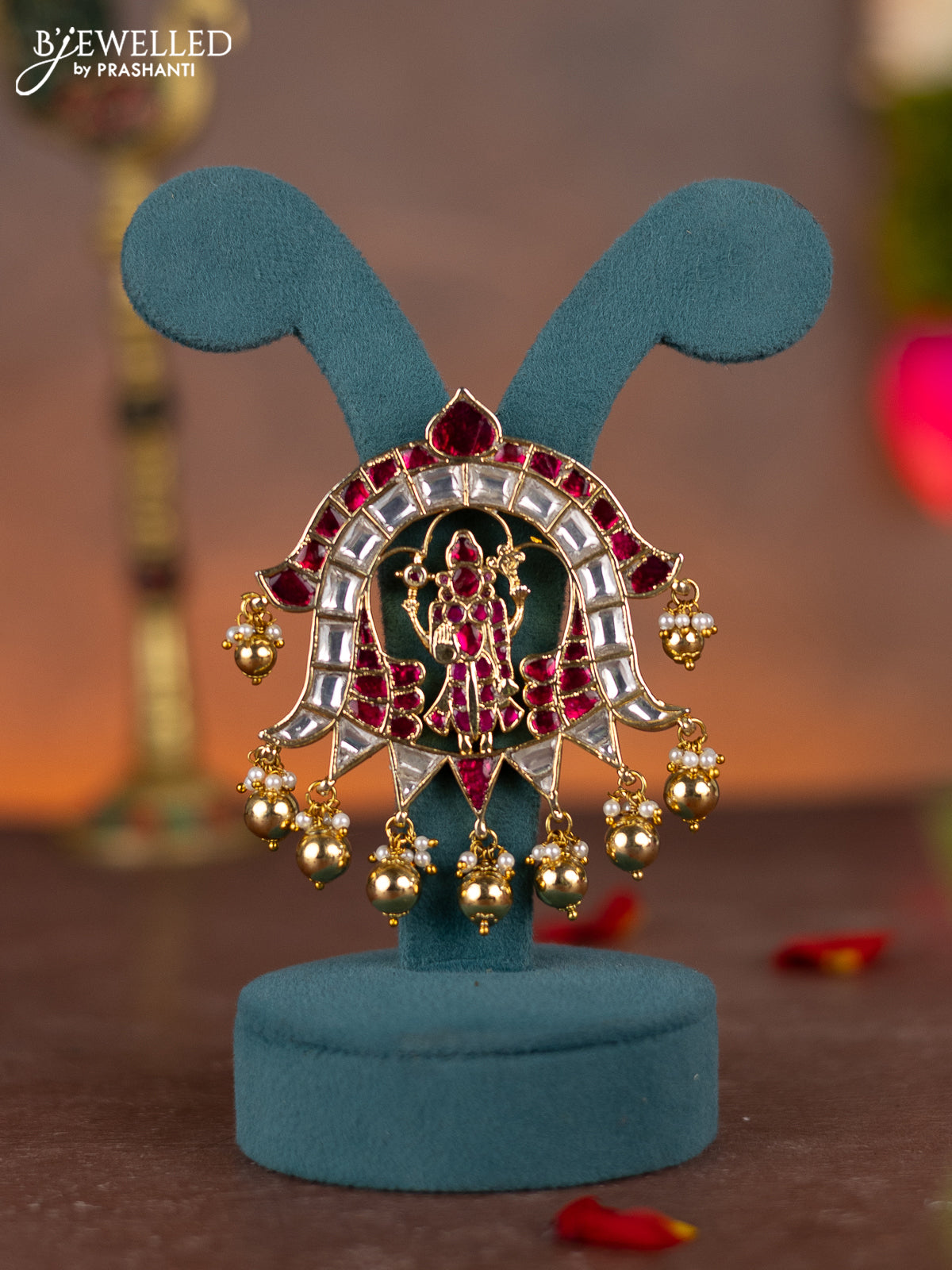 Jadau pendant tirupati balaji design with jadau kundan stones and pearl & golden beads hanging