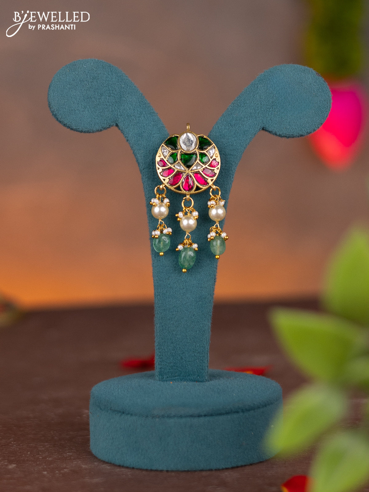 Jadau pendant with jadau kundan stones and pearl & green beads hanging