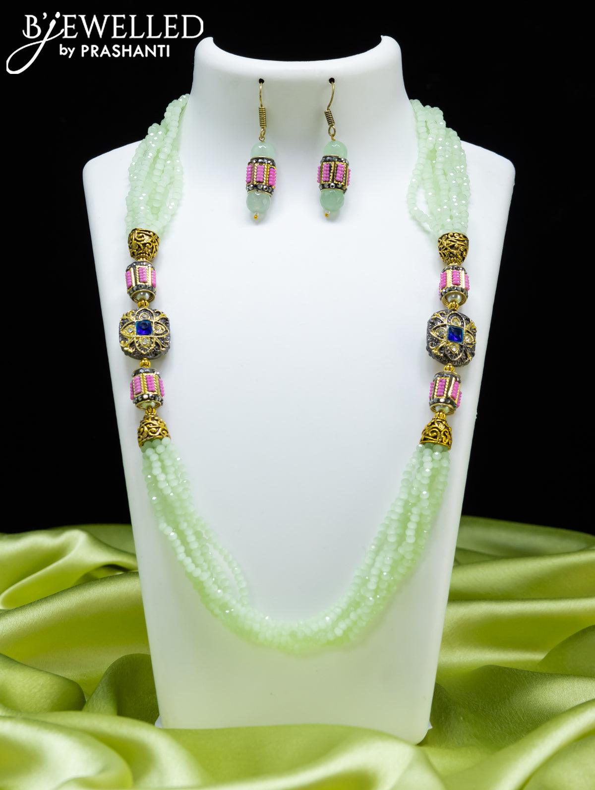 Jaipur beaded mint green necklace with sapphire and cz stone work pendant