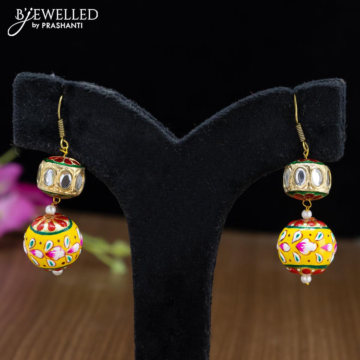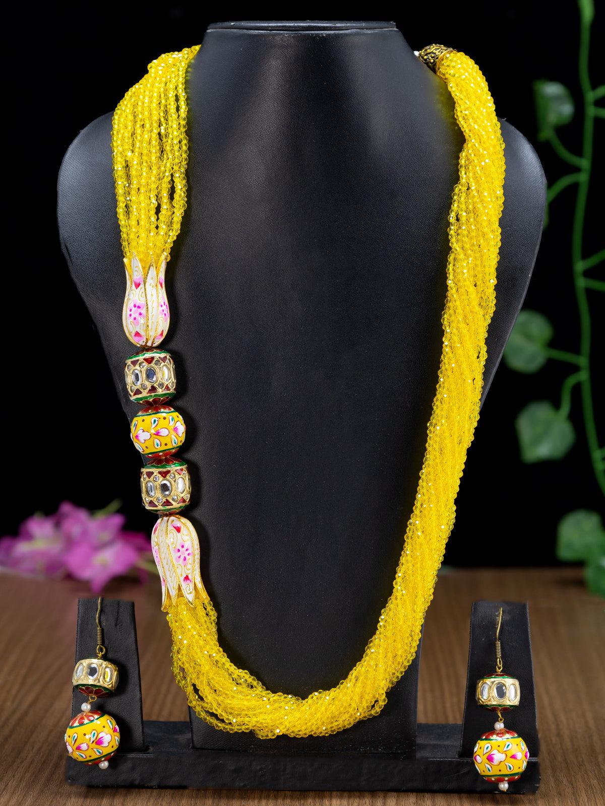Jaipur beaded yellow necklace with minakari lotus pendant