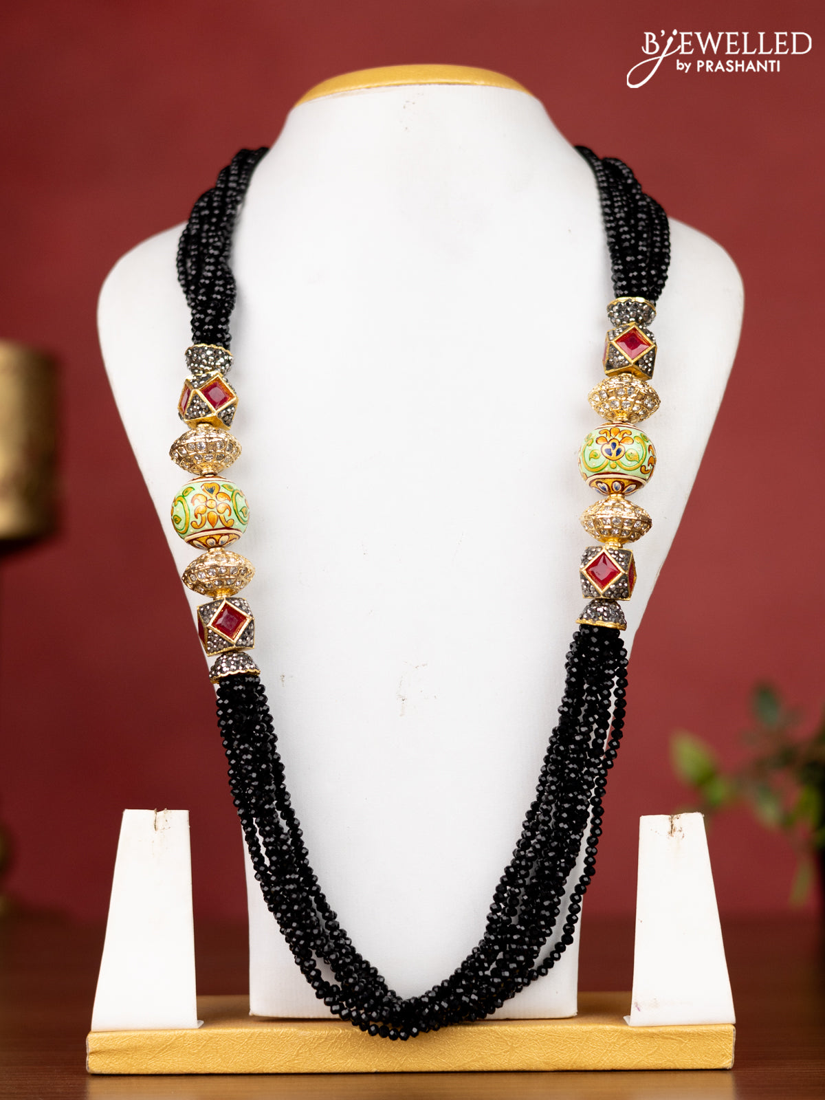 Jaipur black cystal beaded necklace with minakari balls without earrings