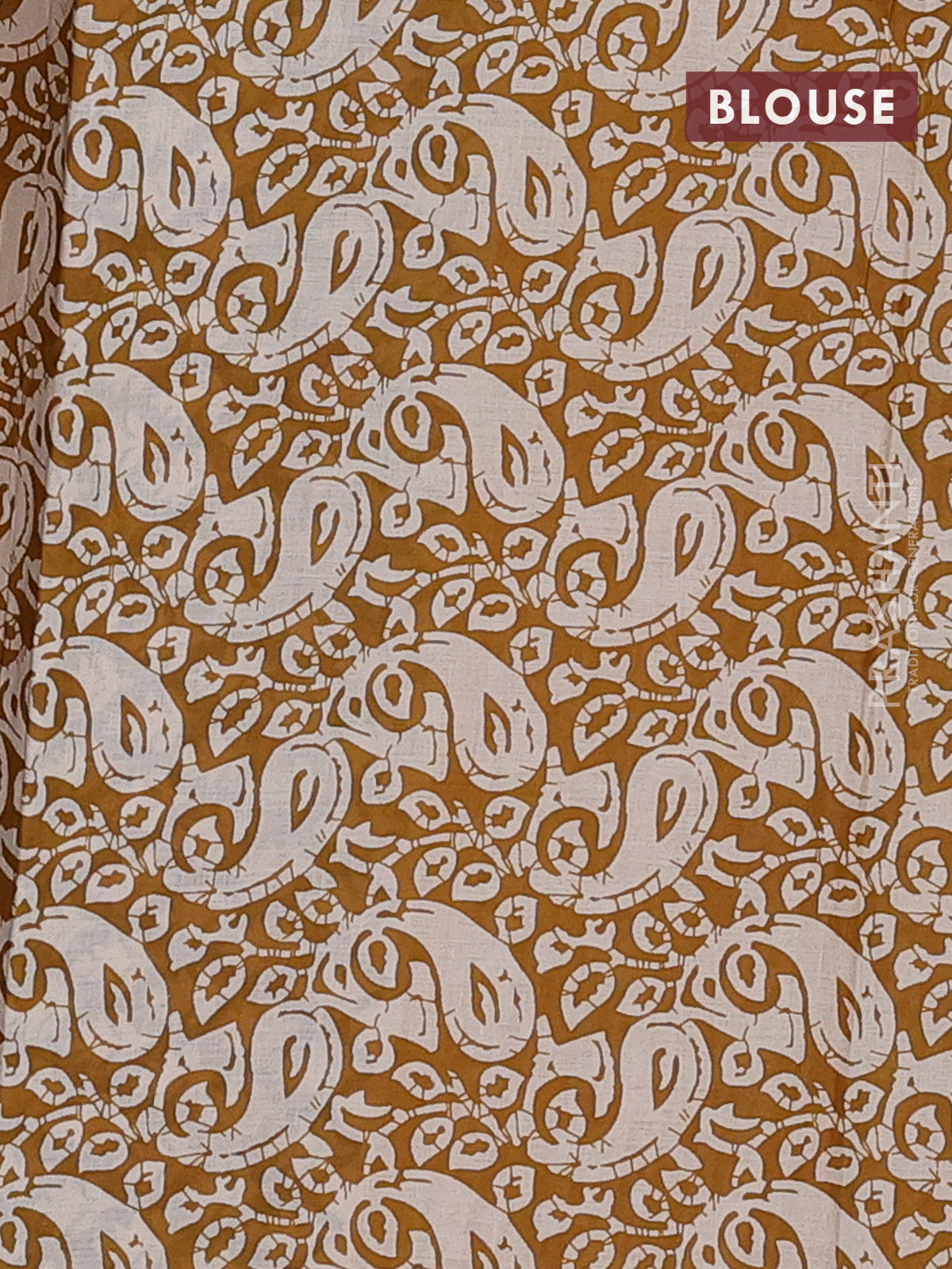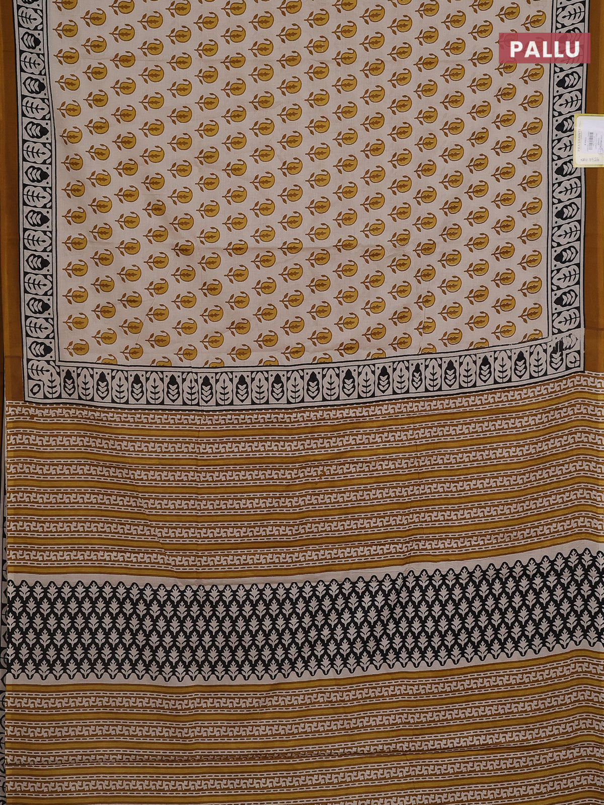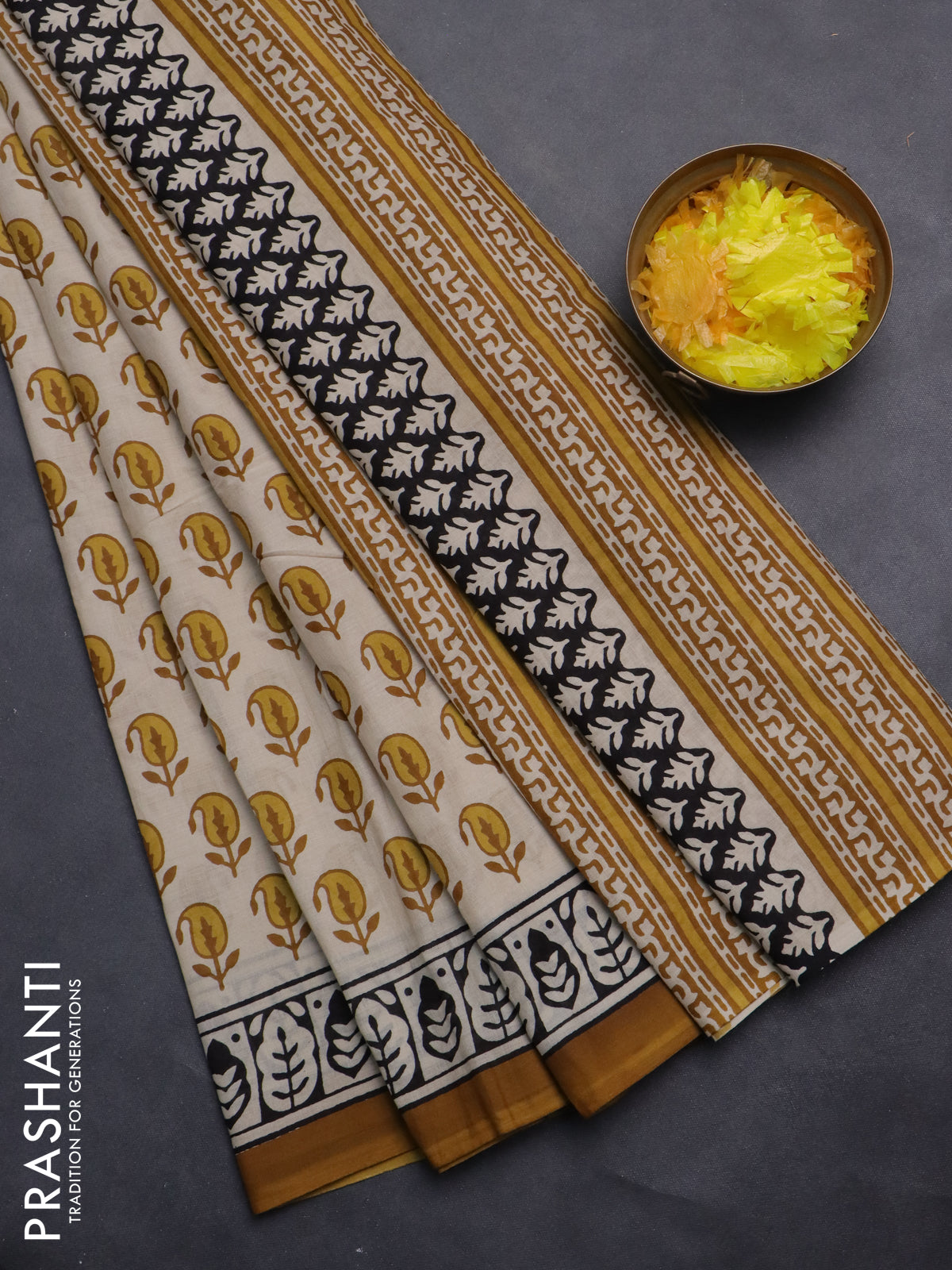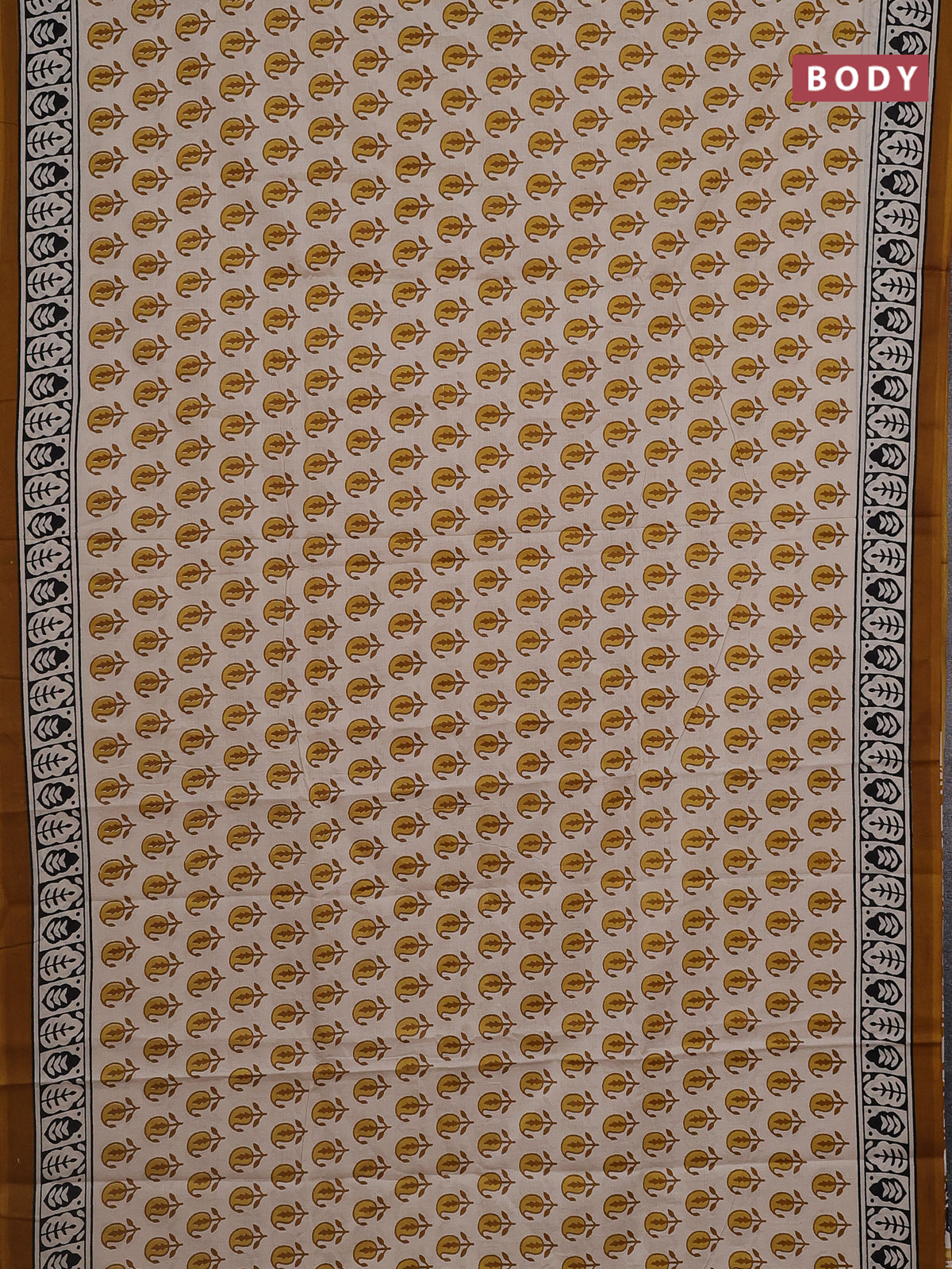 Jaipur cotton saree beige and dark mustard with paisley butta prints and printed border