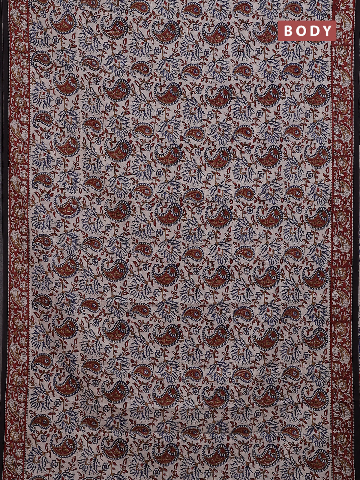 Jaipur cotton saree beige and maroon with allover kalamkari prints and printed border