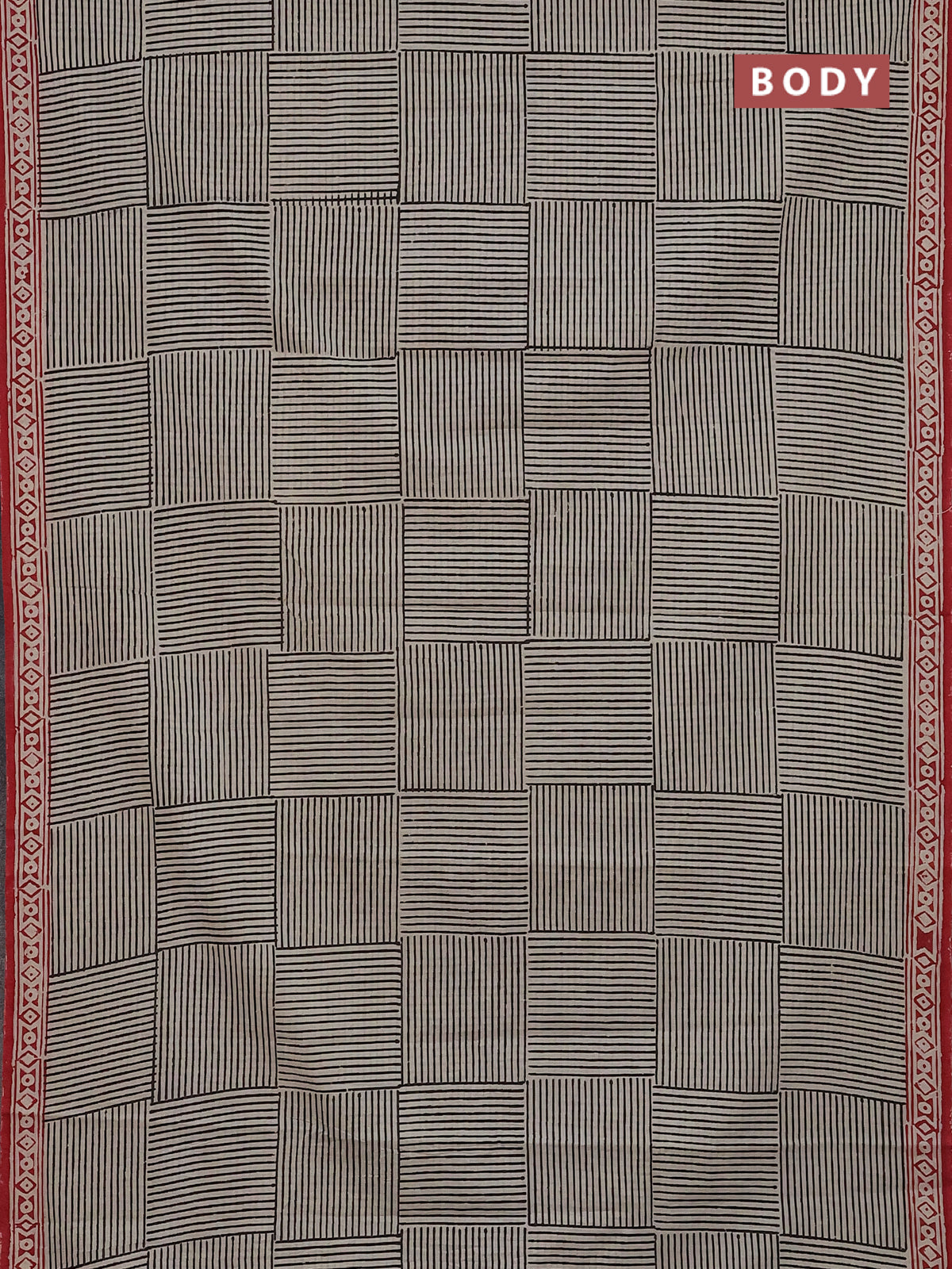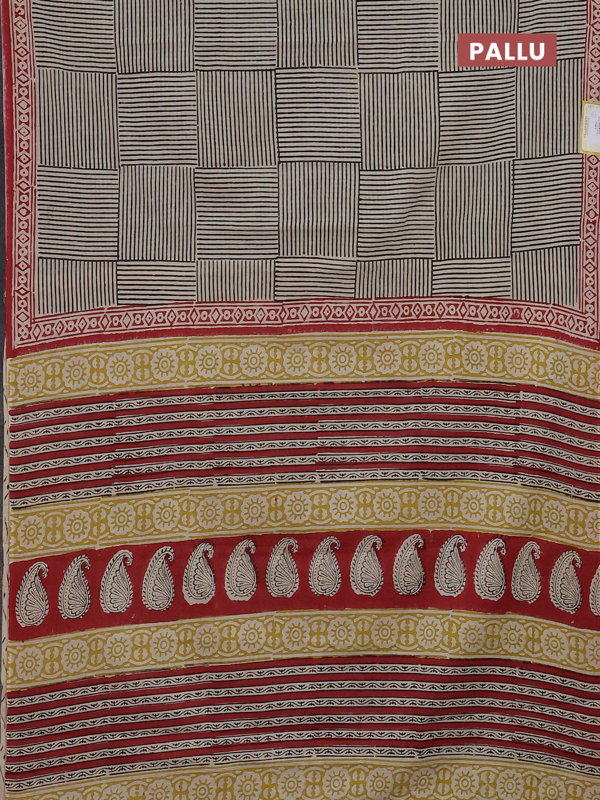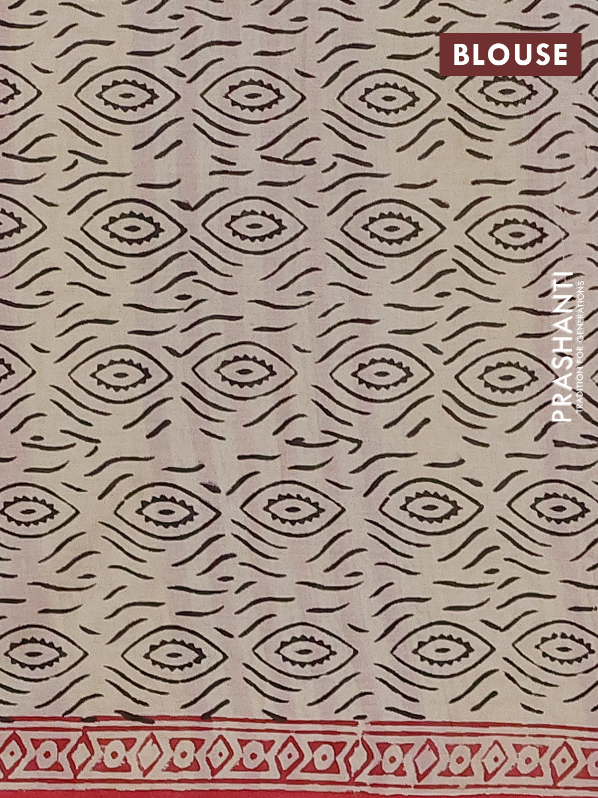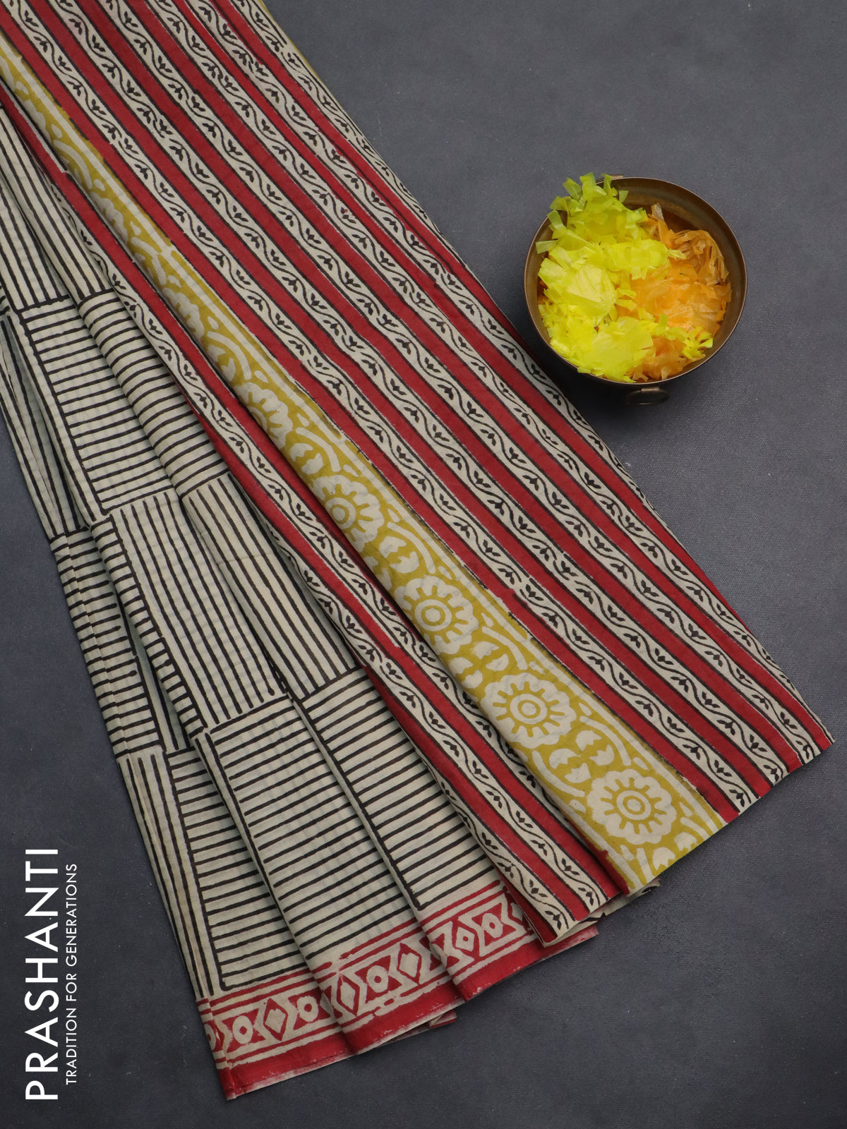 Jaipur cotton saree beige black and red with allover prints and printed border