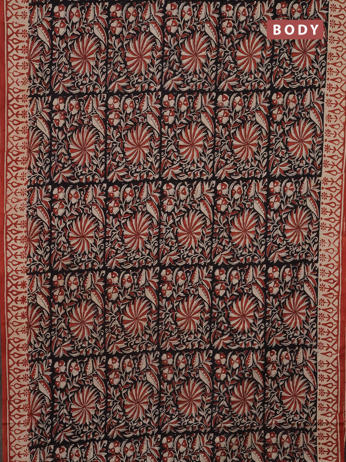 Jaipur cotton saree black and beige with allover kalamkari prints and printed border