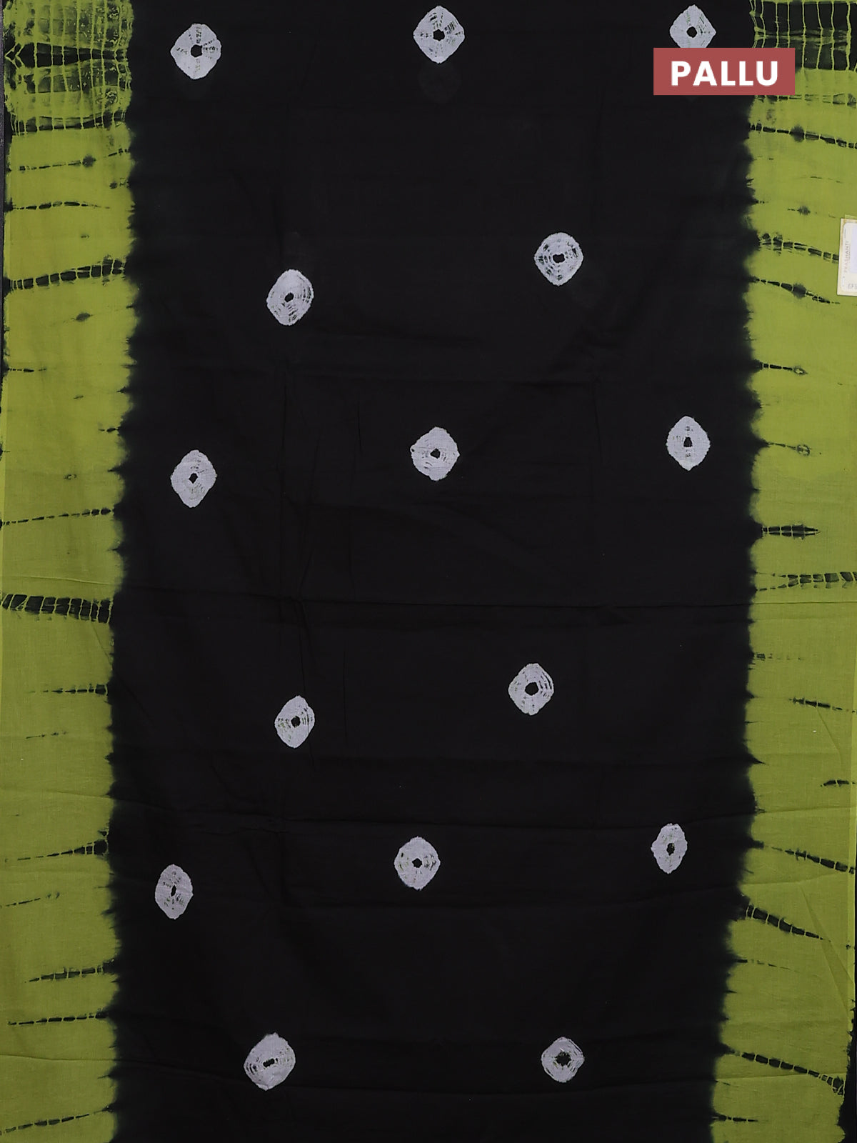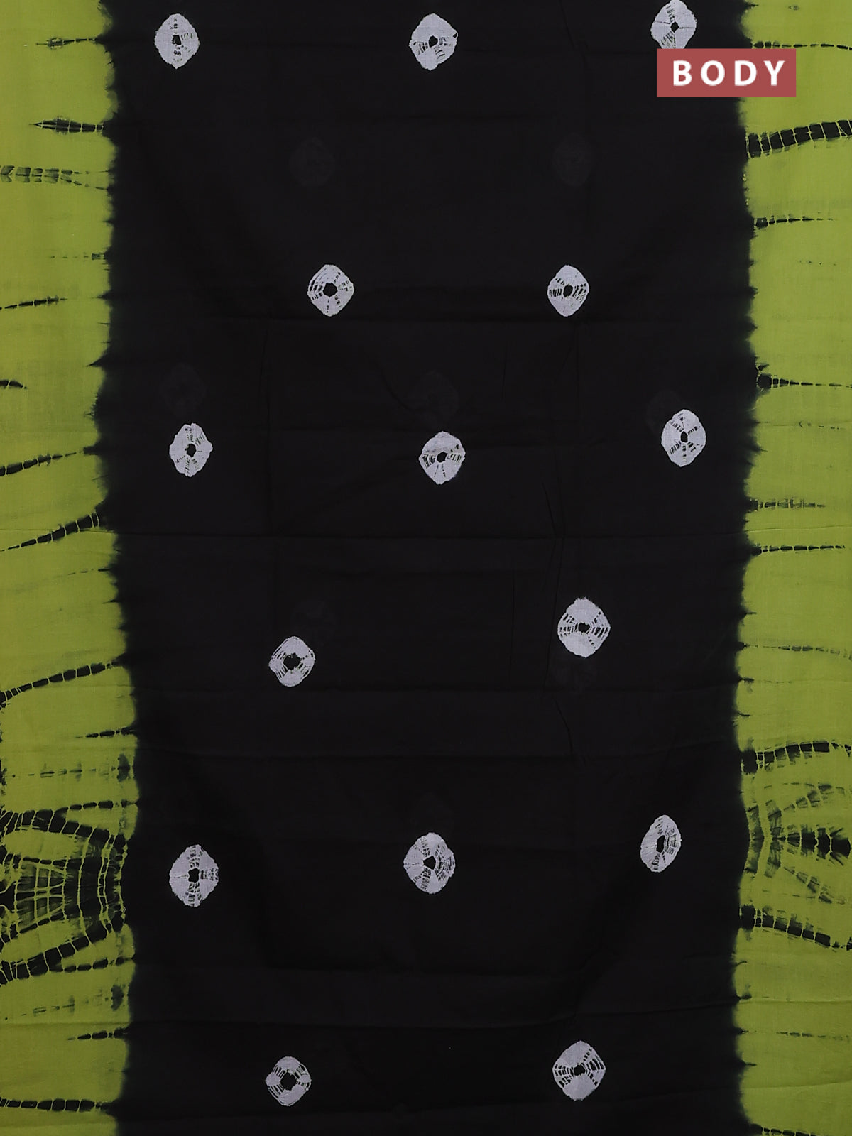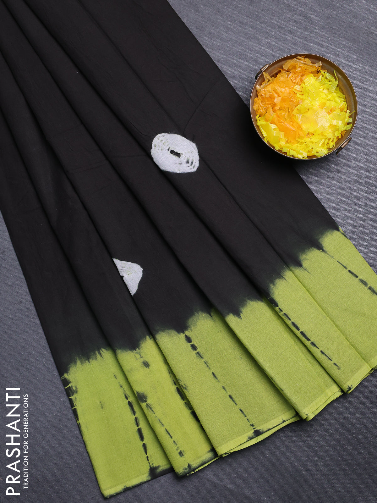 Jaipur cotton saree black and green with allover tie & dye prints in borderless style