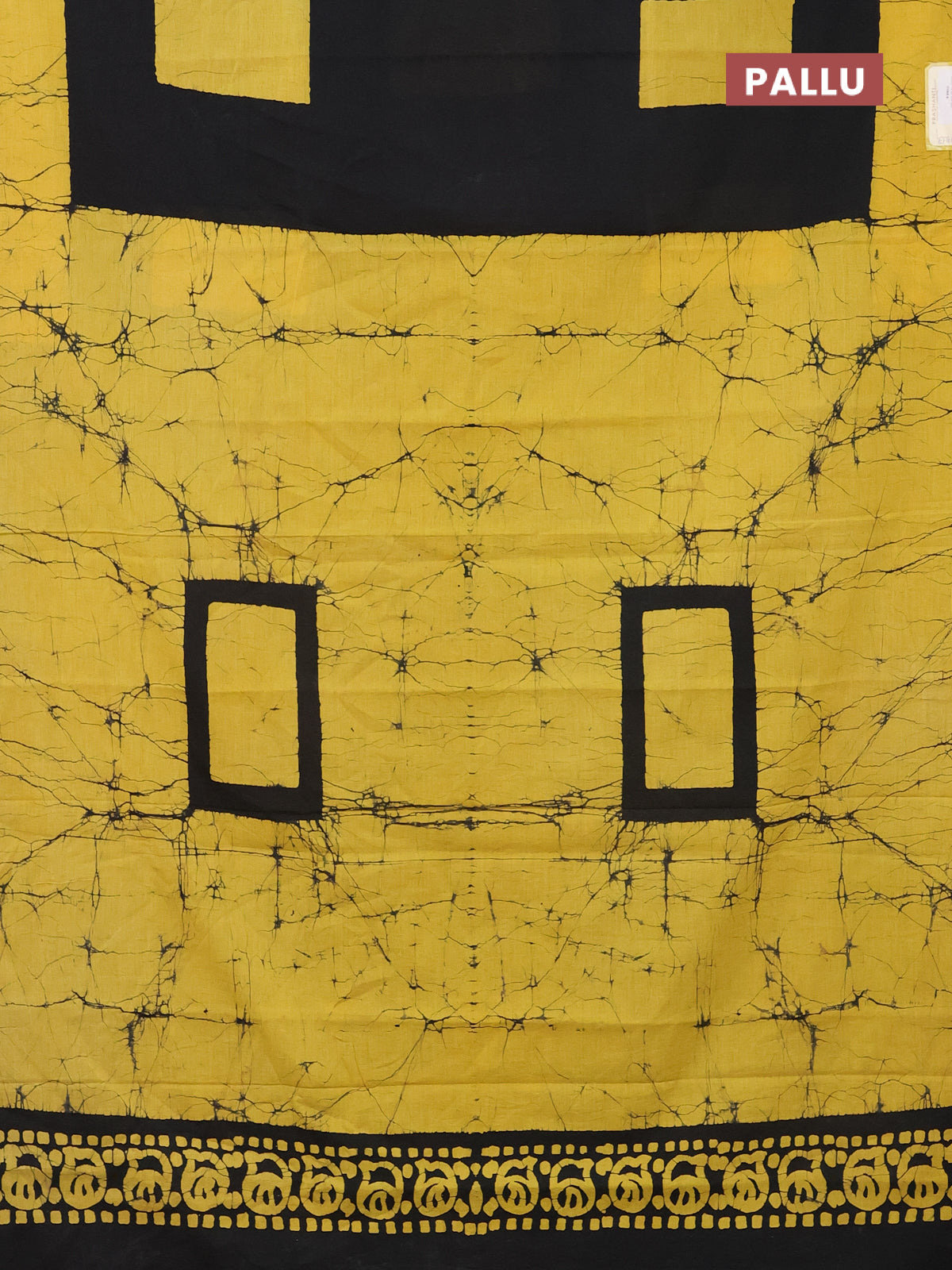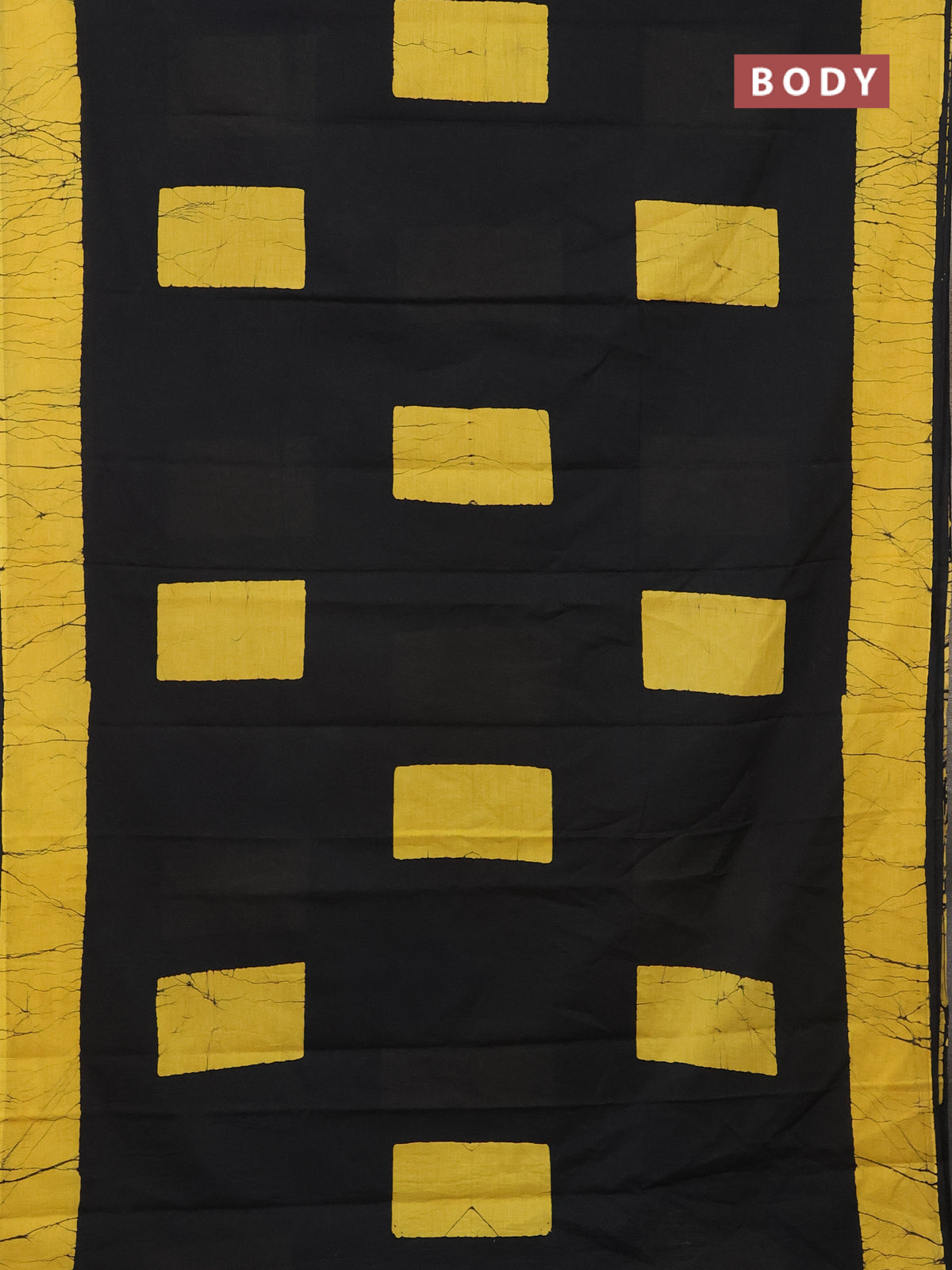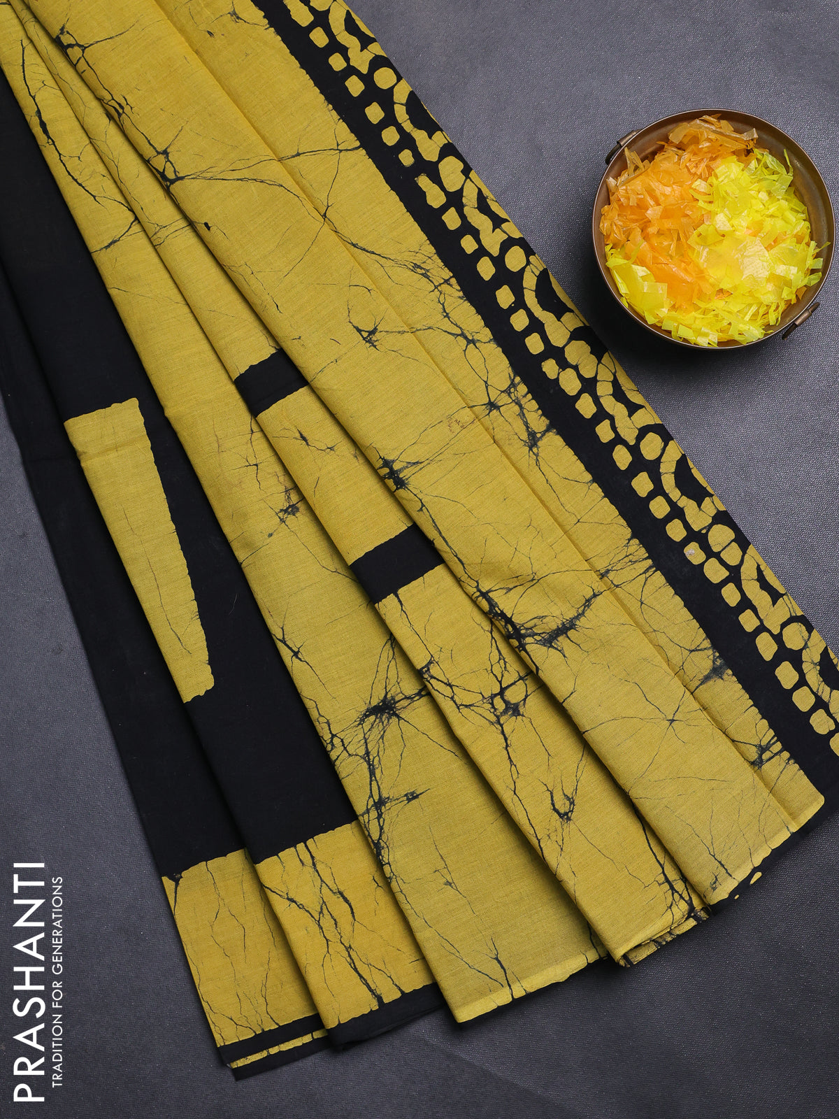 Jaipur cotton saree black and mustard yellow with batik prints and printed border