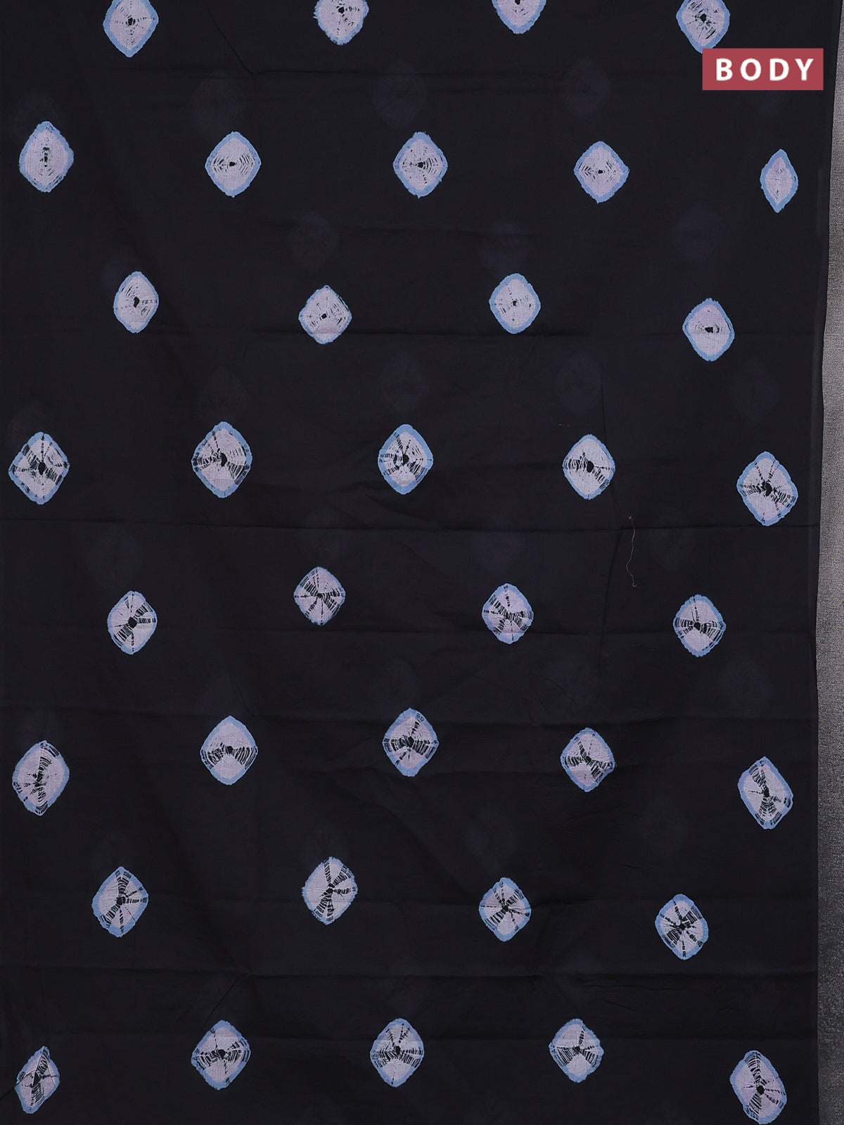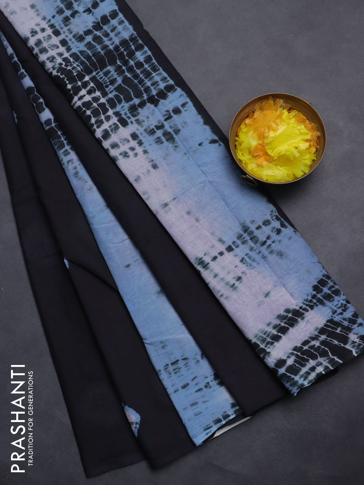 Jaipur cotton saree black and pastel blue with batik butta prints in borderless style