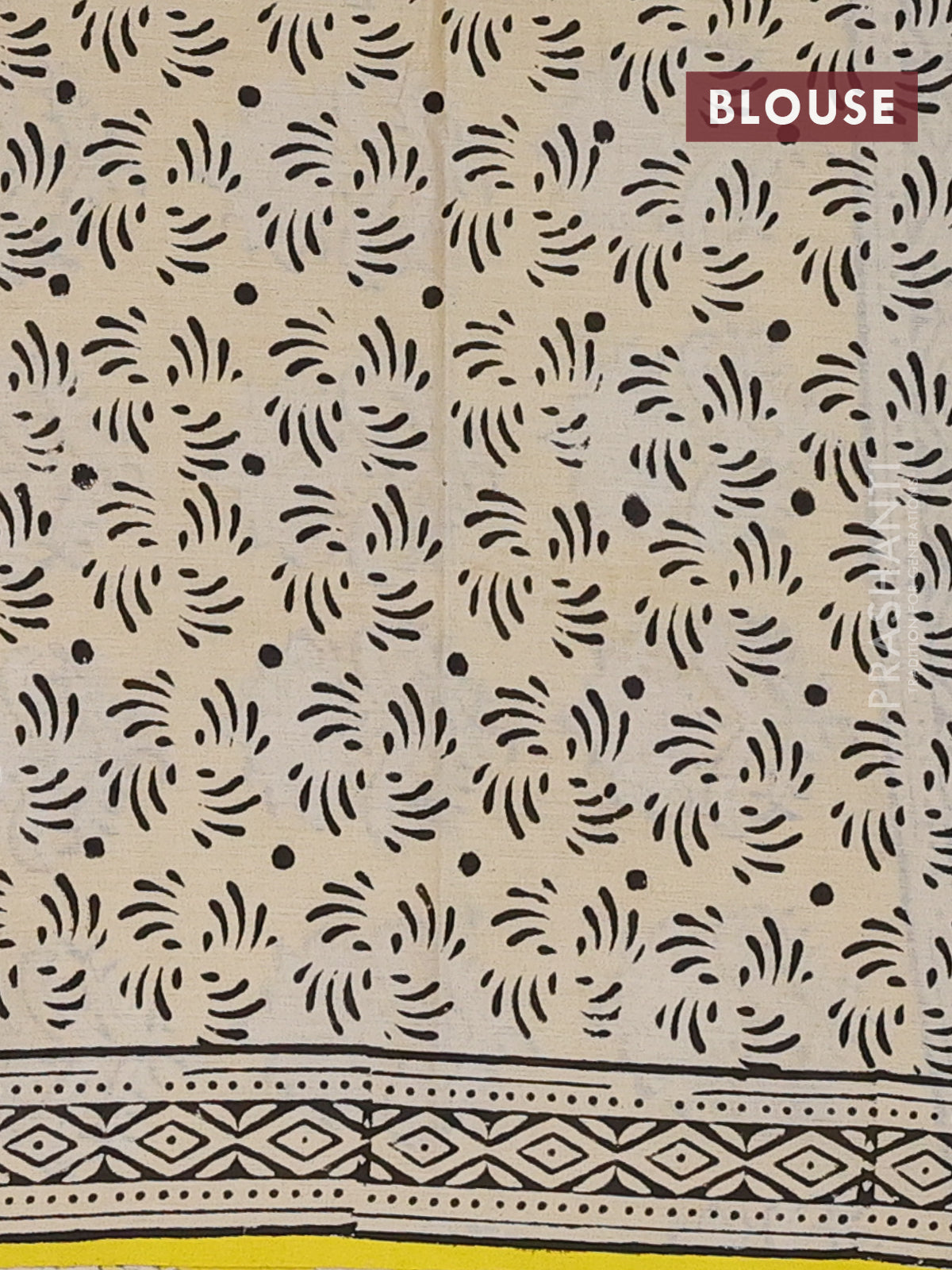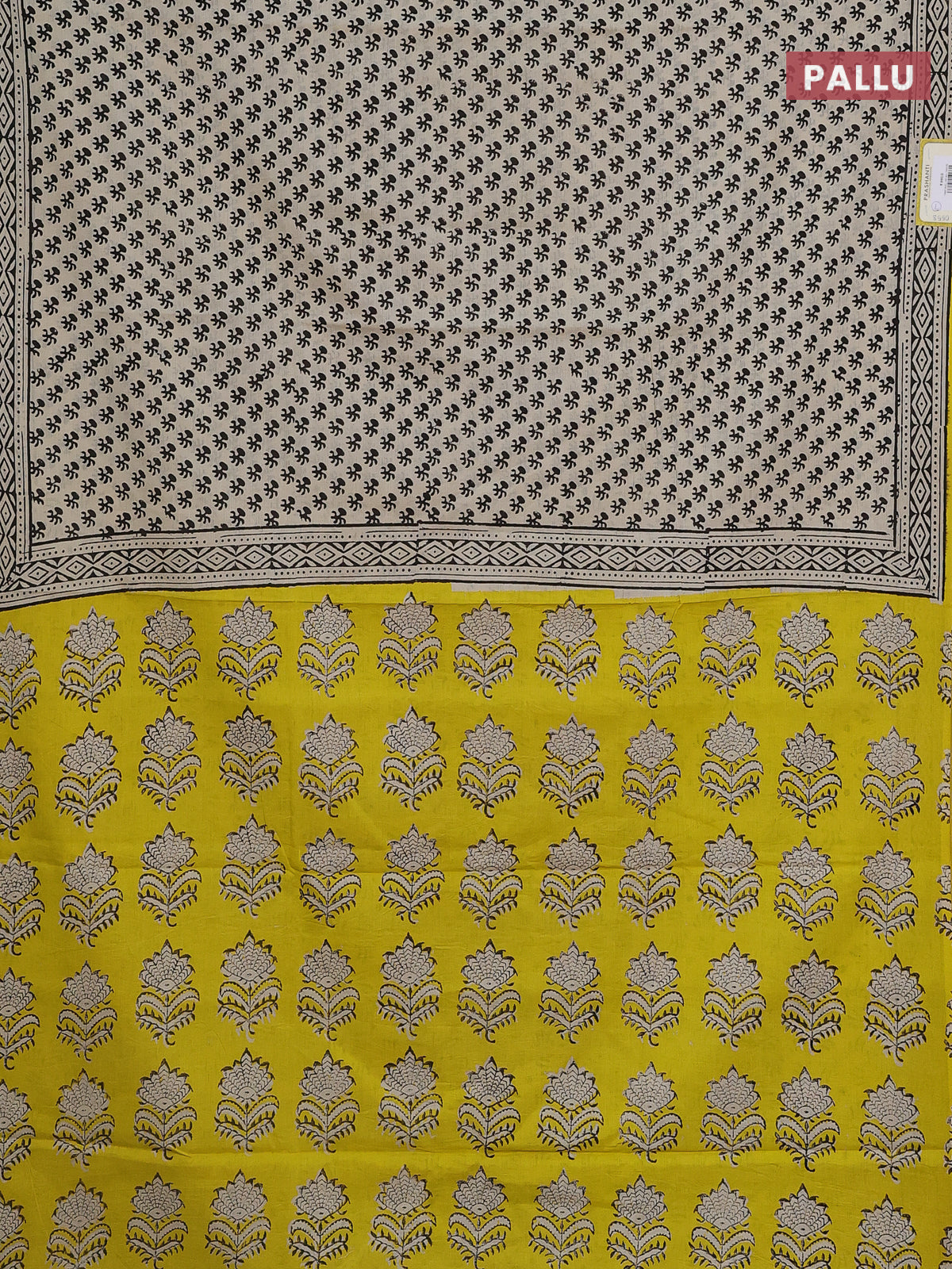 Jaipur cotton saree cream and yellow with butta prinrs and printed border