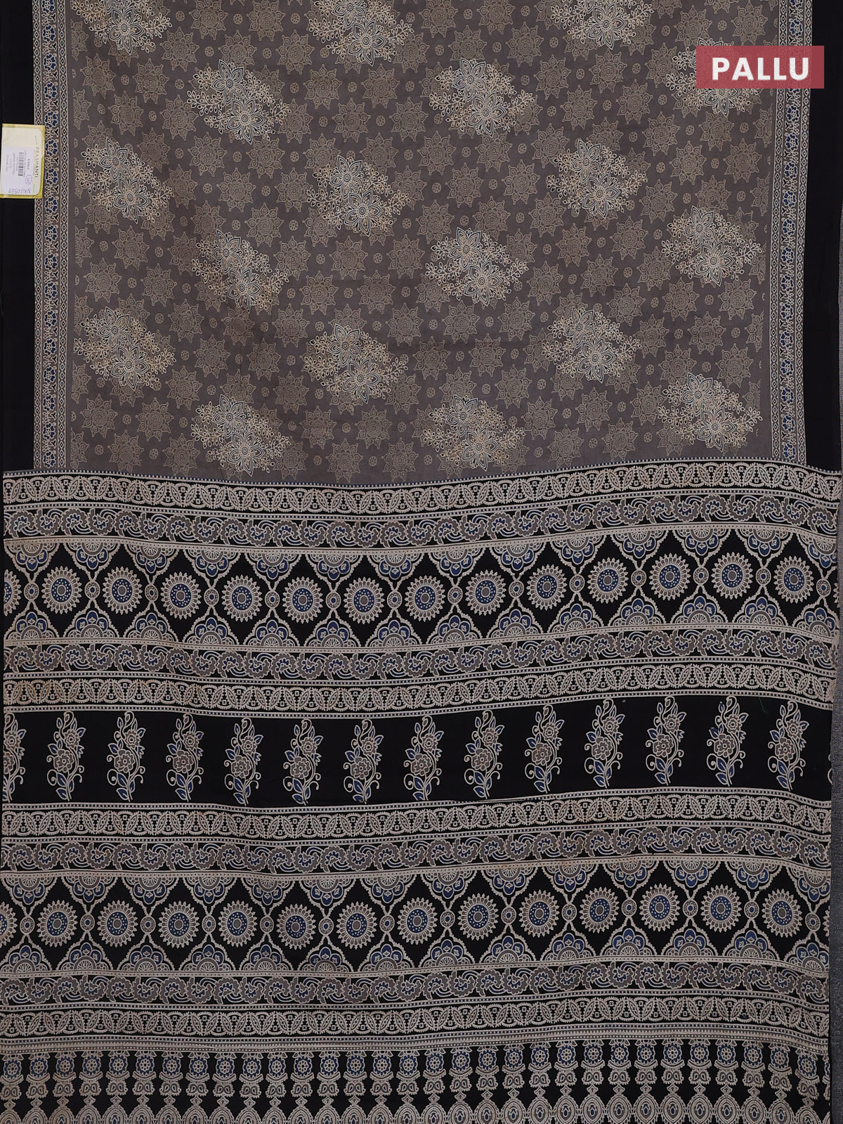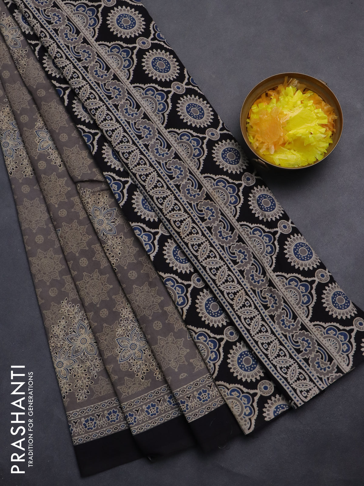 Jaipur cotton saree grey and black with allover ajrakh prints and printed border