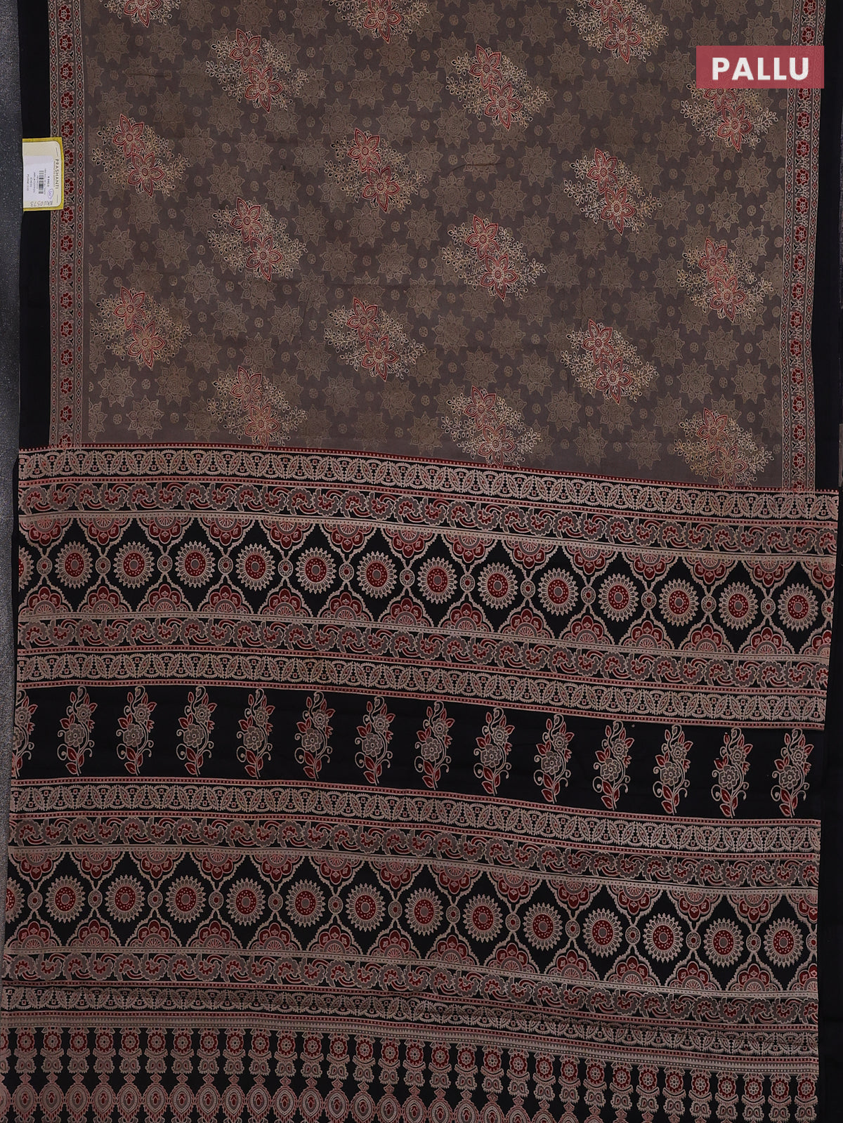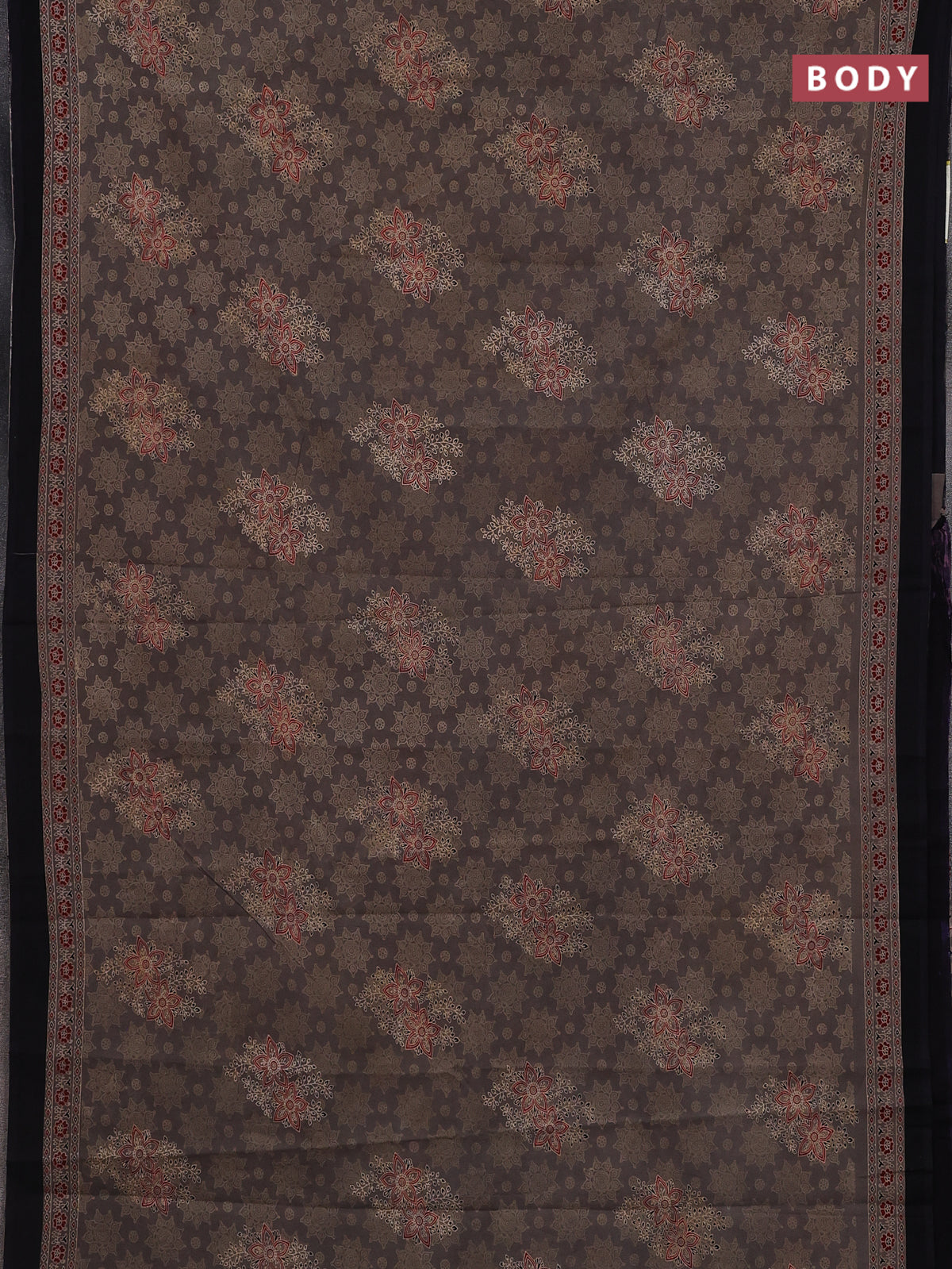 Jaipur cotton saree grey and black with allover ajrakh prints and printed border