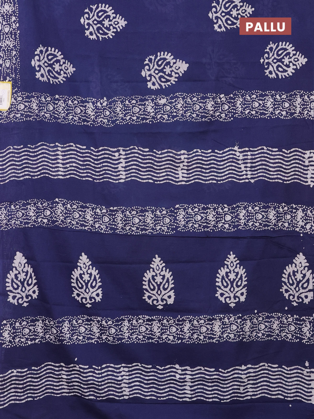 Jaipur cotton saree indigo blue and white with batik prints and printed border