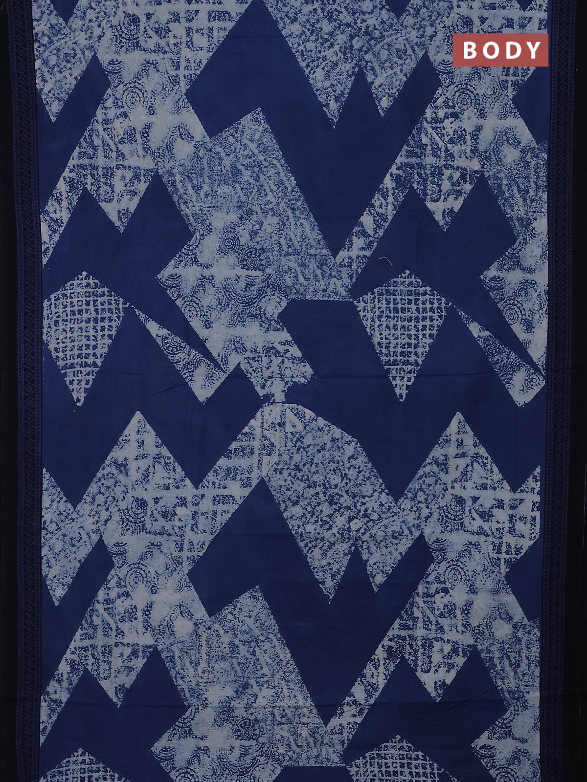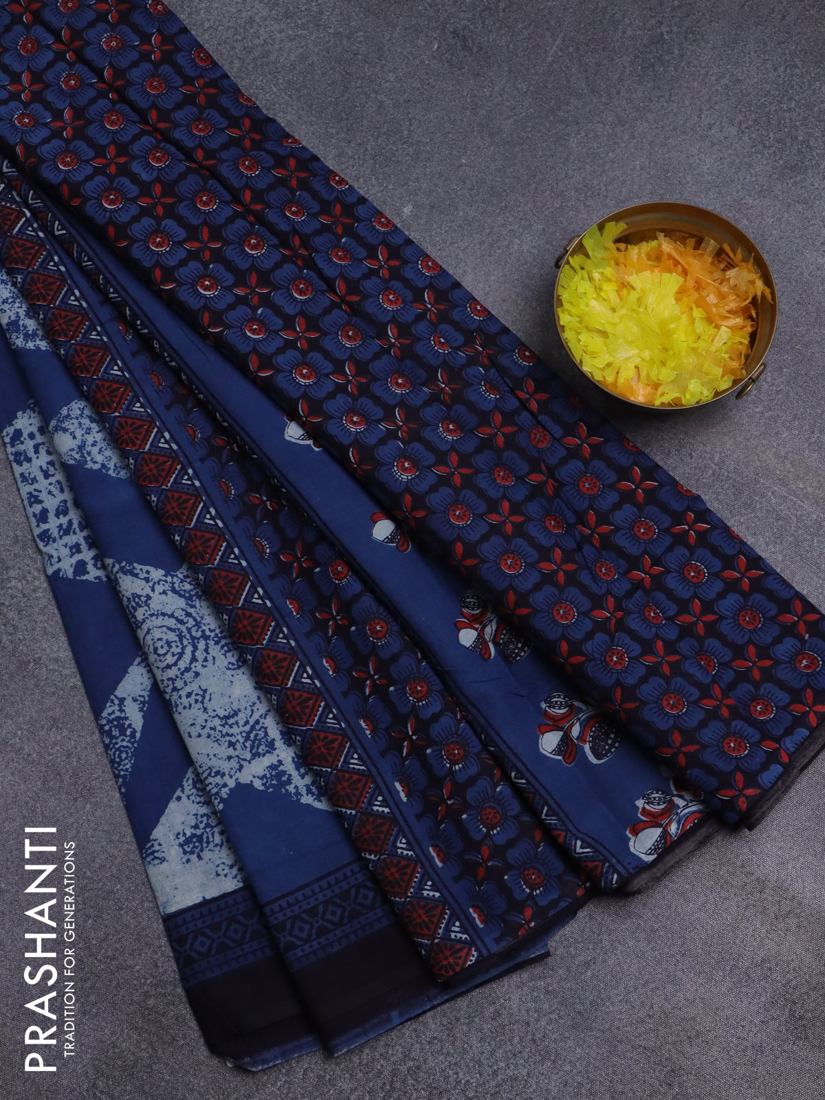 Jaipur cotton saree indigo blue beige and black with allover prints and printed border