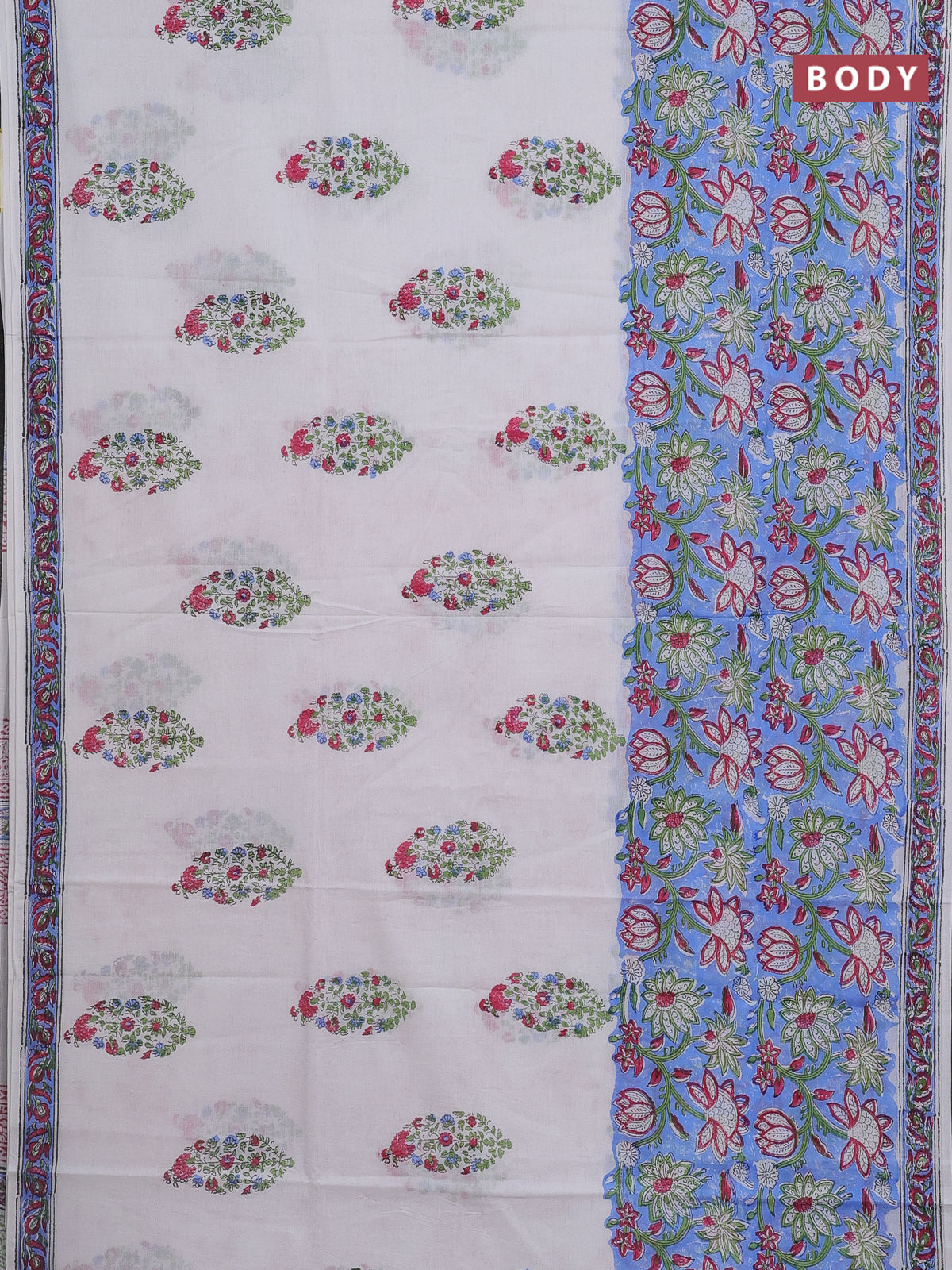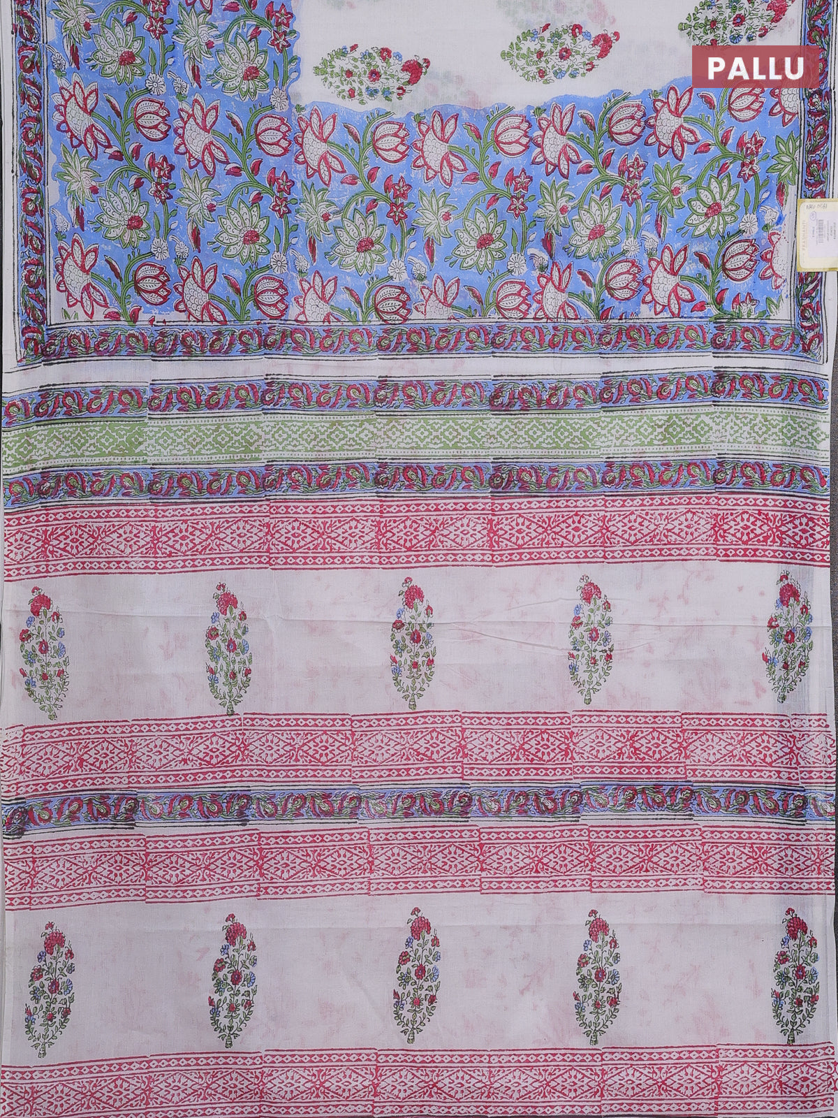 Jaipur cotton saree light blue and off white with allover floral prints and printed border