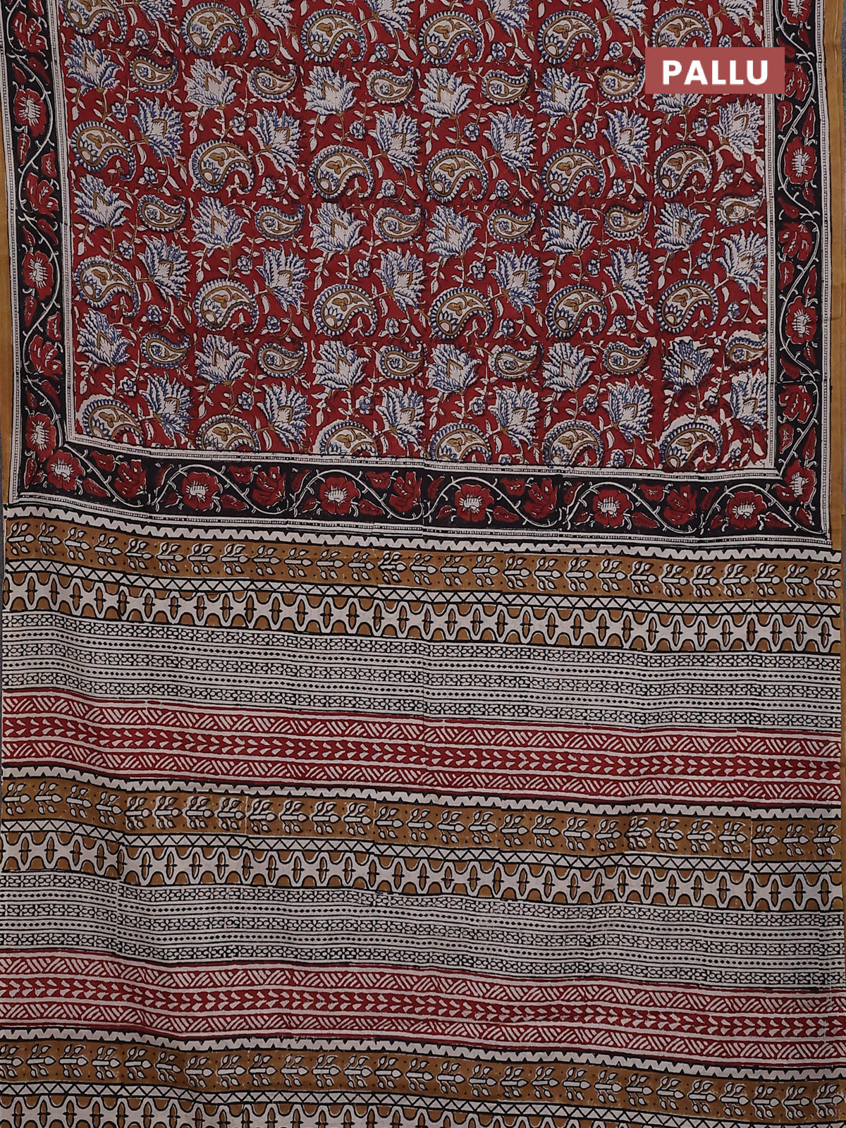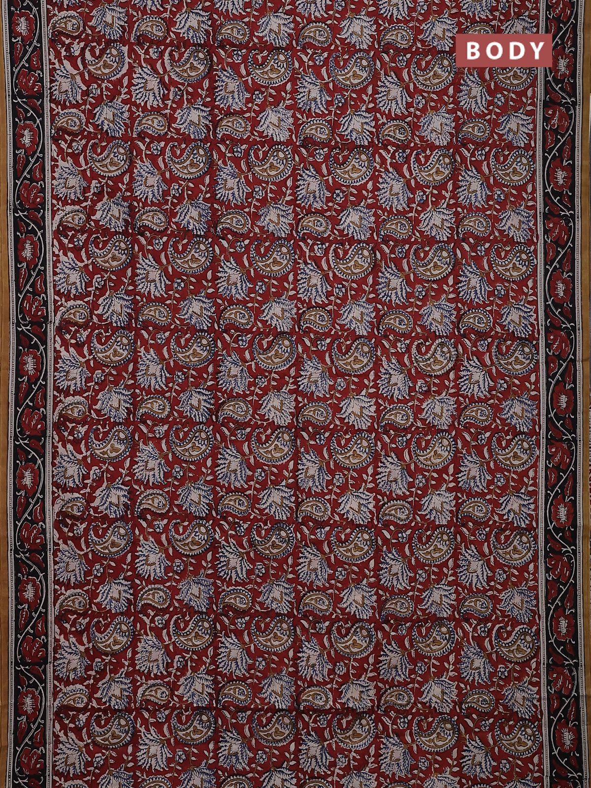 Jaipur cotton saree maroon and black with allover kalamkari prints and printed border
