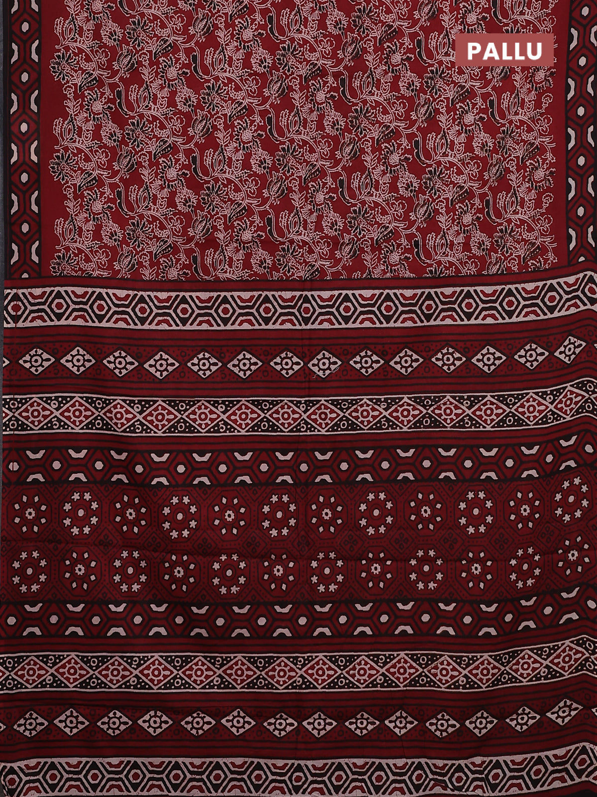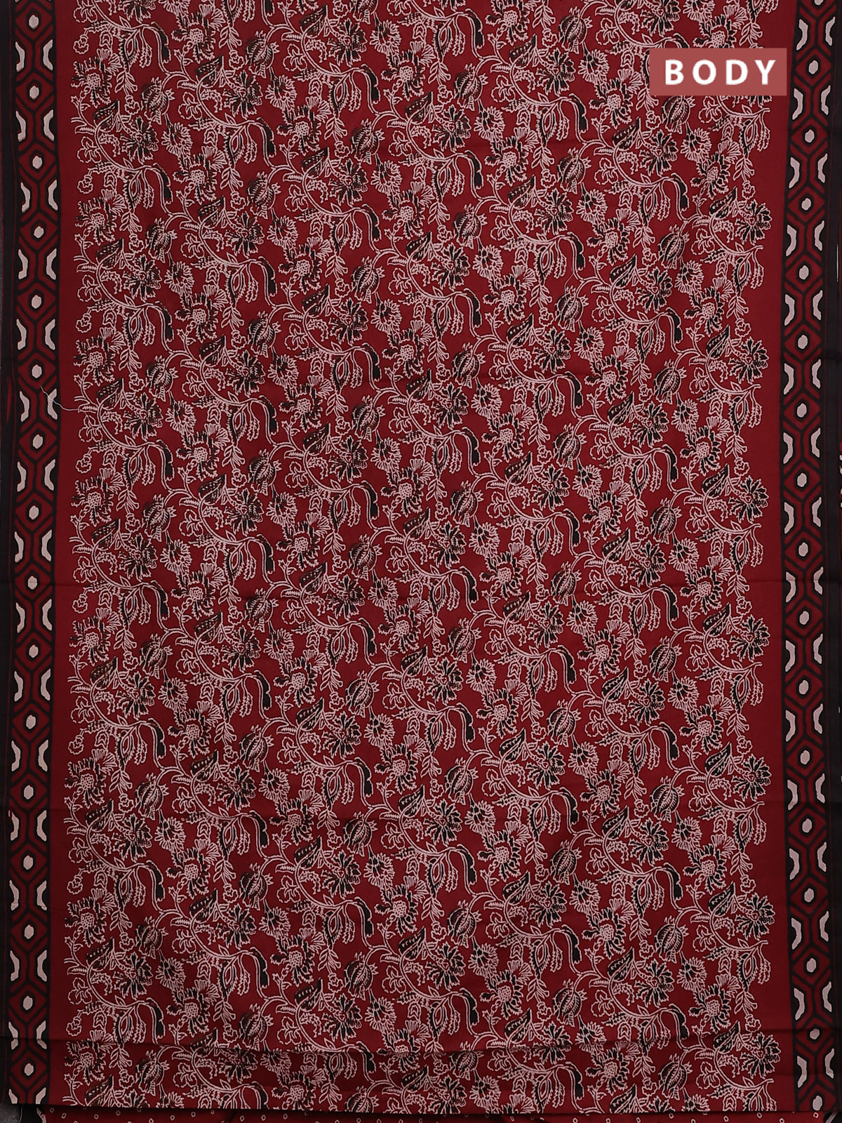 Jaipur cotton saree maroon and black with allover kalamkari prints and printed border