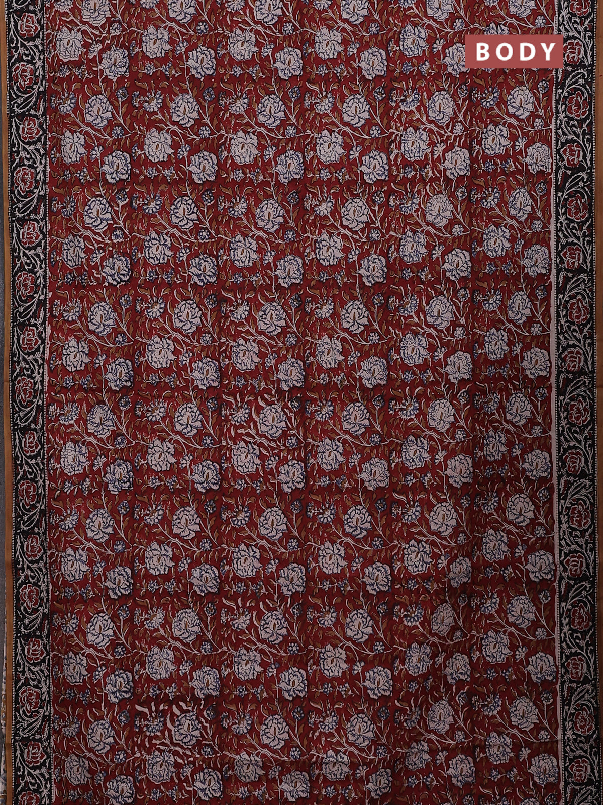 Jaipur cotton saree maroon and black with allover kalamkari prints and printed border