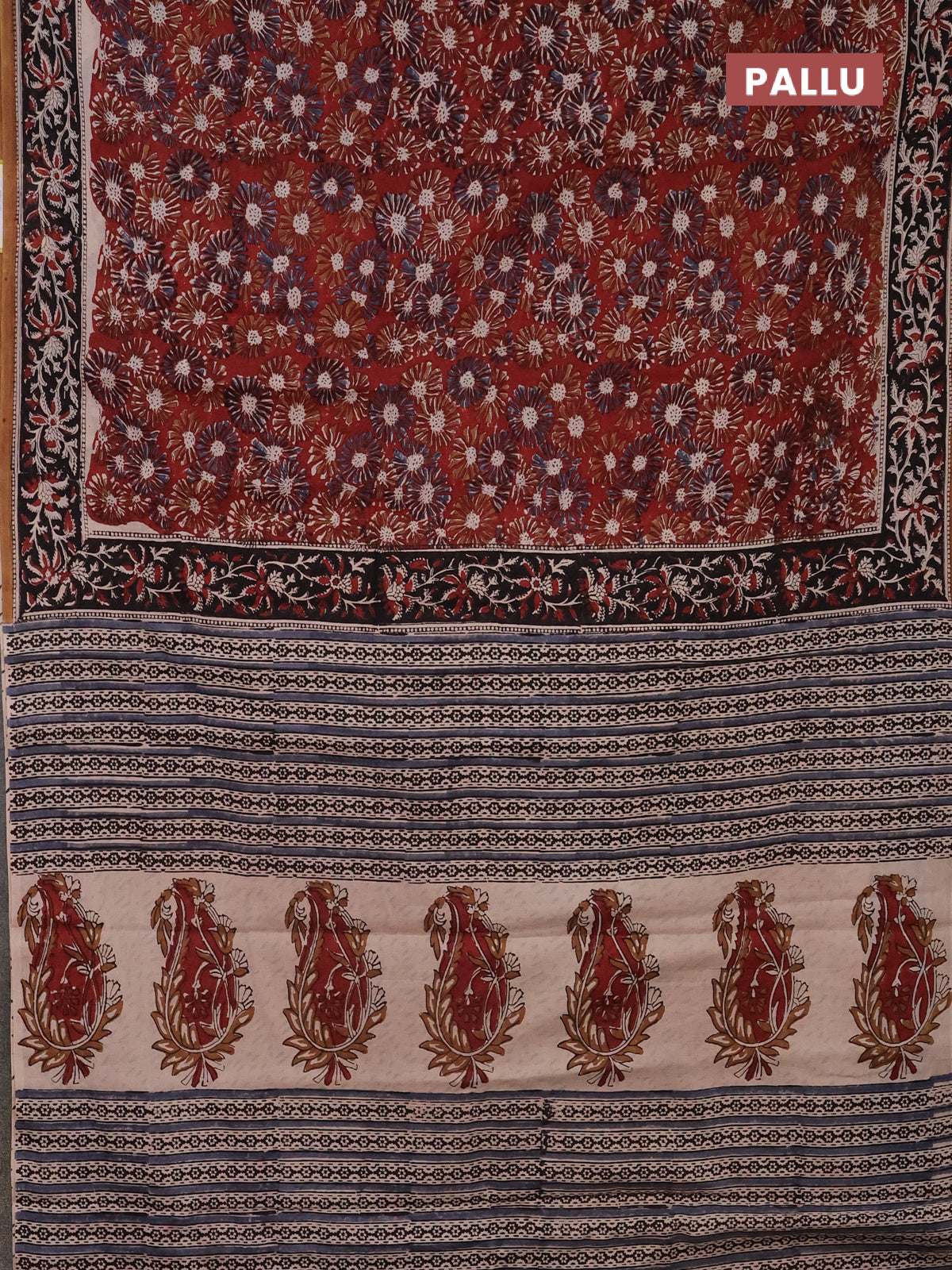 Jaipur cotton saree marron and black with allover kalamkari prints and printed border