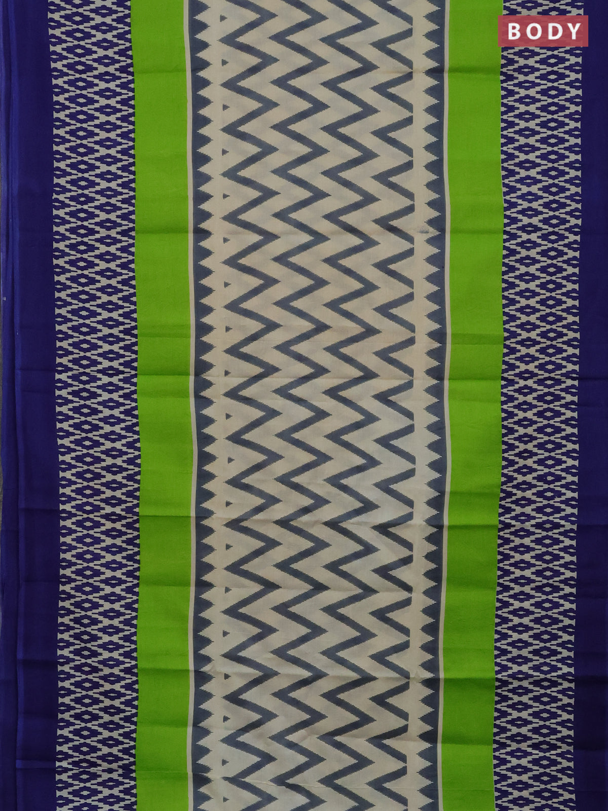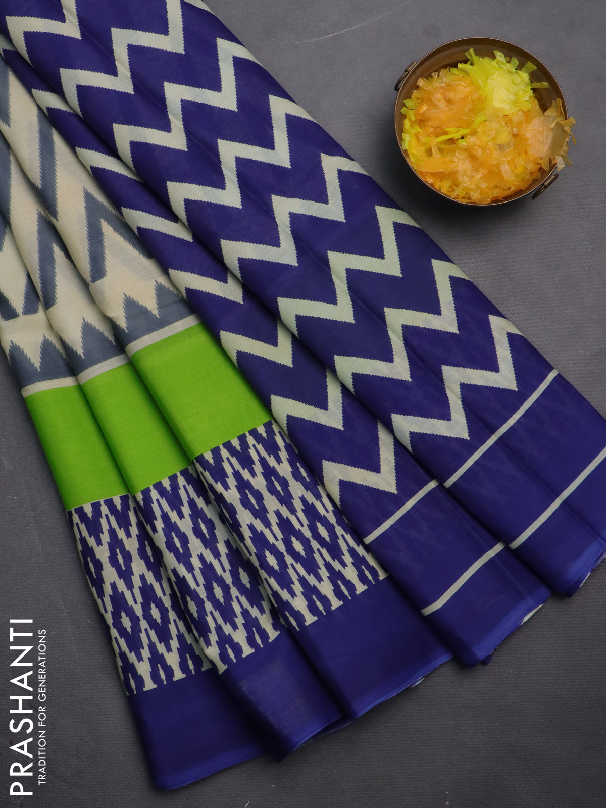Jaipur cotton saree multi colour and blue with allover ikat prints and printed border