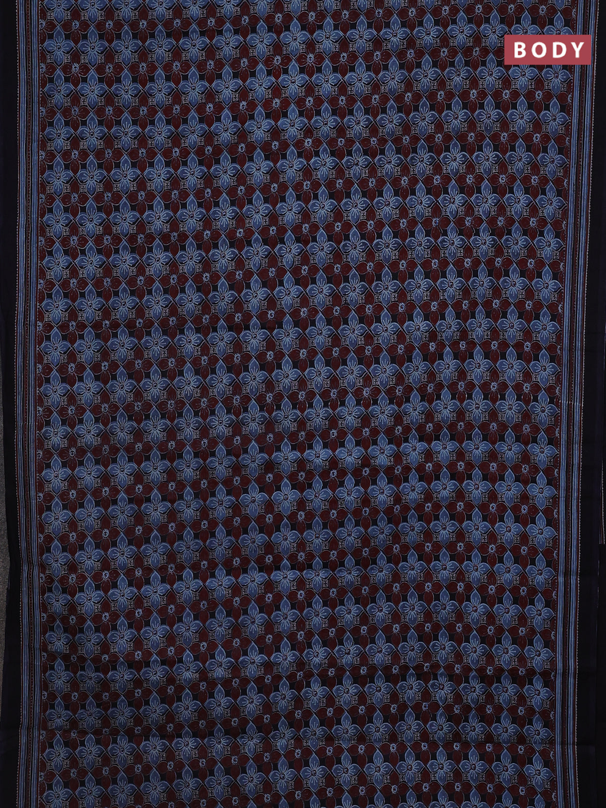 Jaipur cotton saree navy blue and maroon blue with allover floral prints and printed border