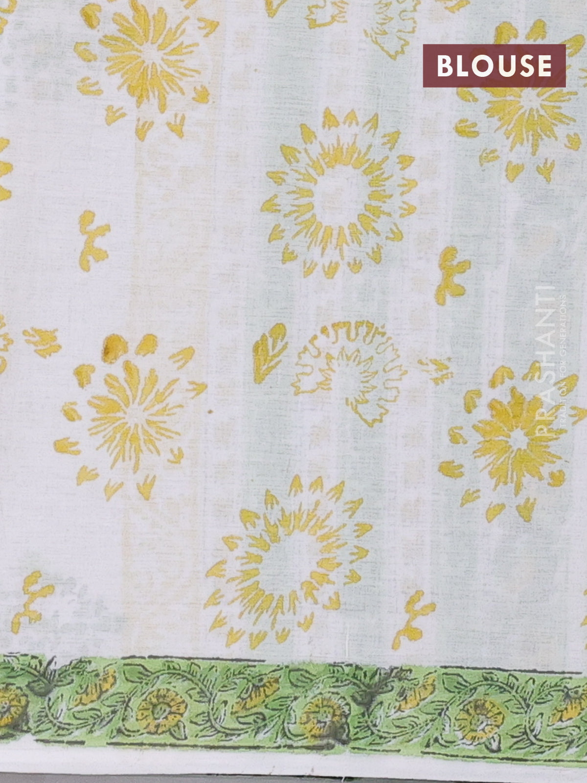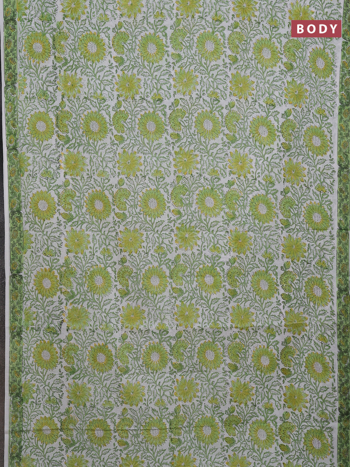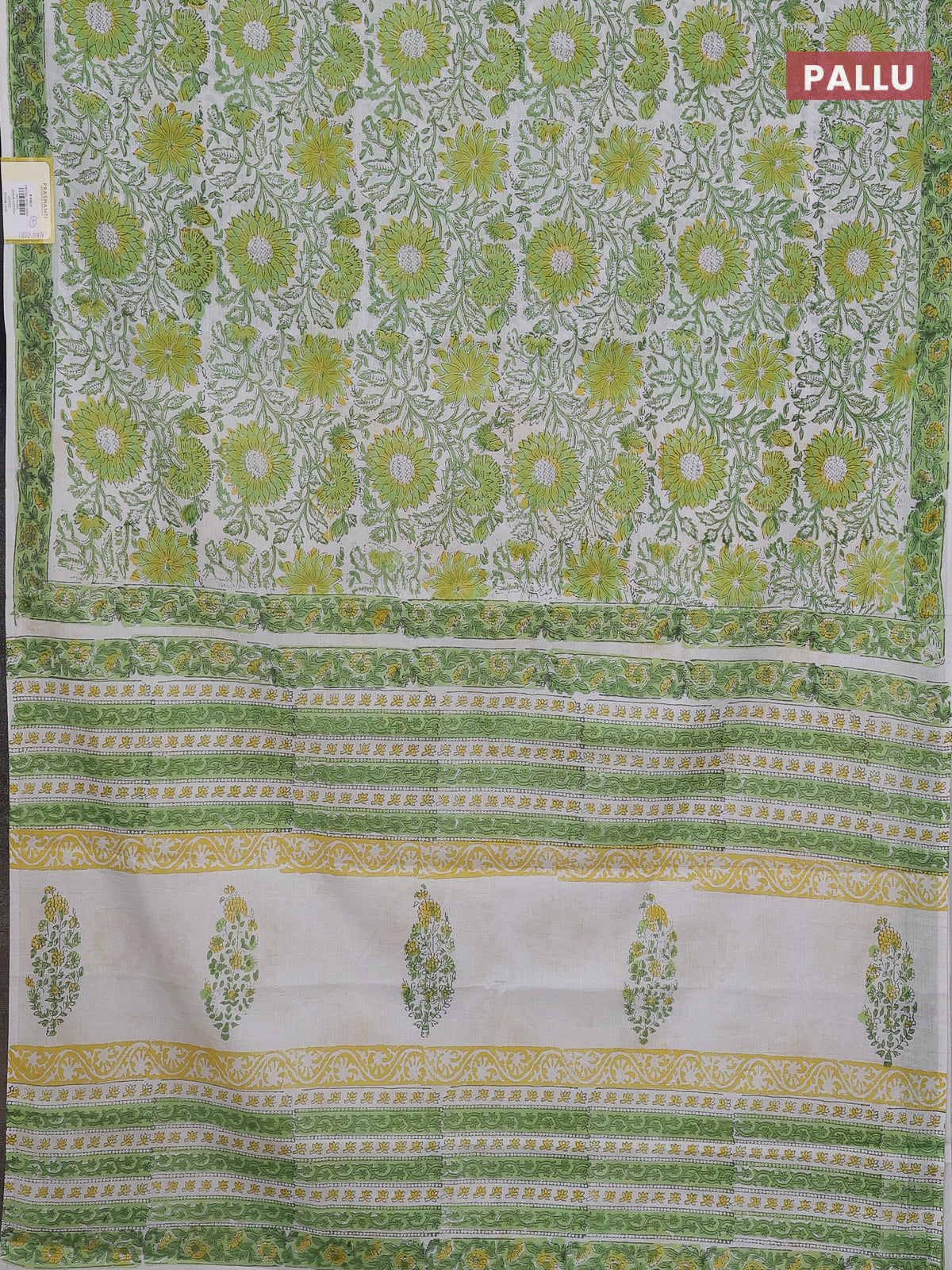 Jaipur cotton saree off white and light green with allover floral prints and printed border