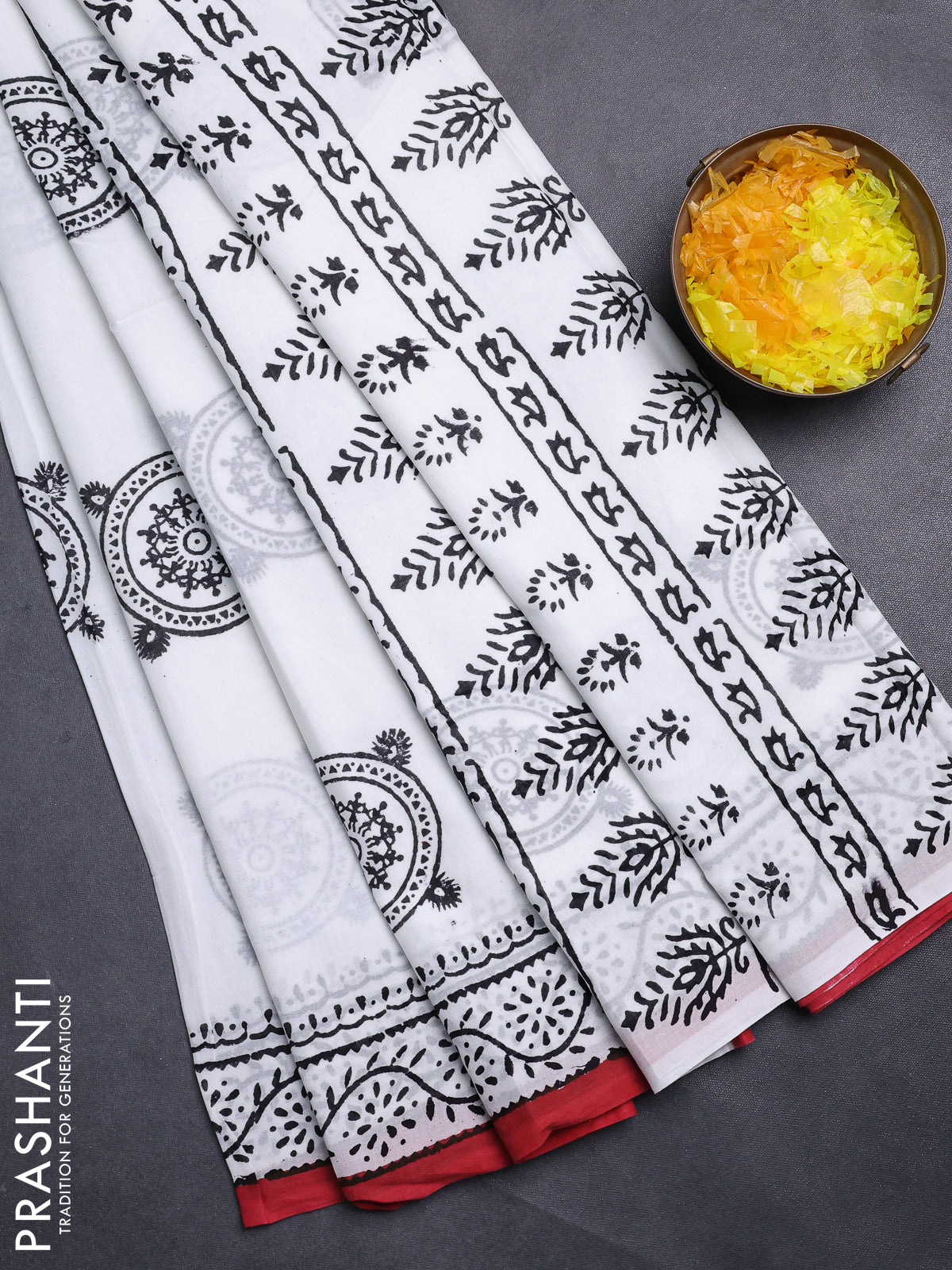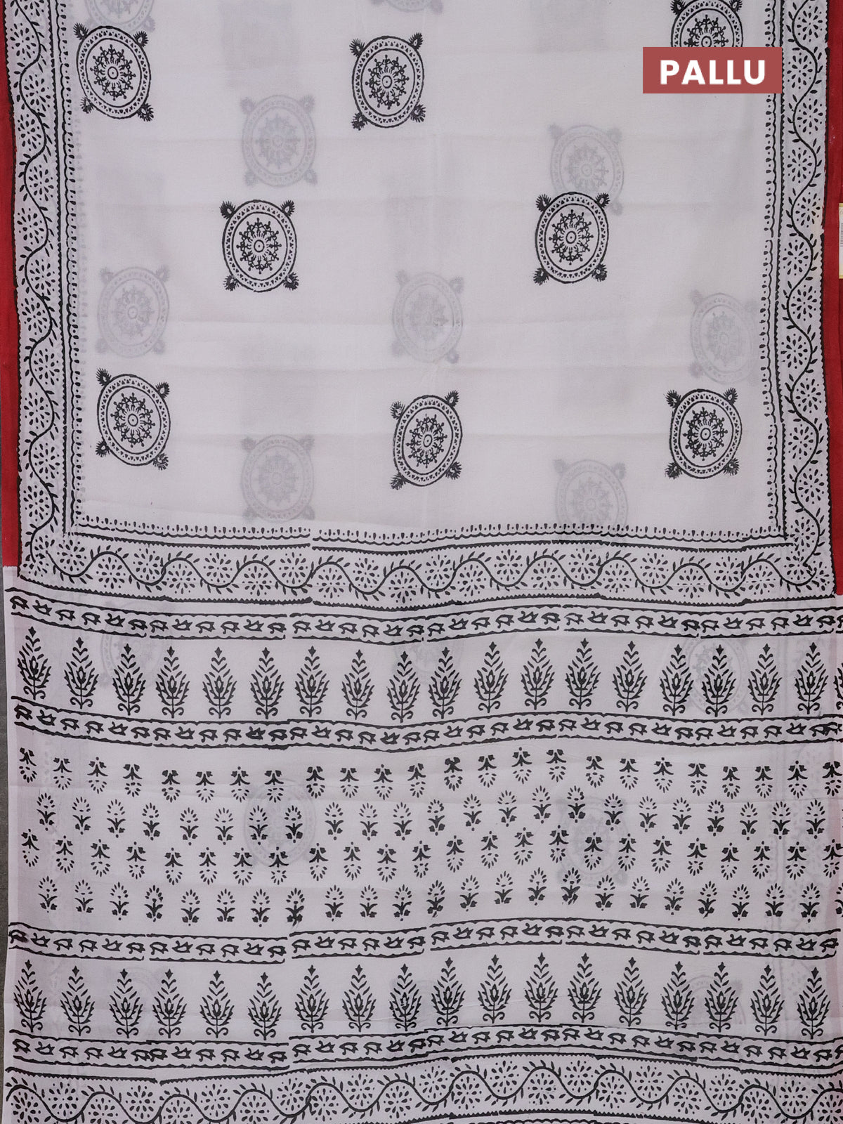 Jaipur cotton saree off white and marron with warli butta prints and printed border