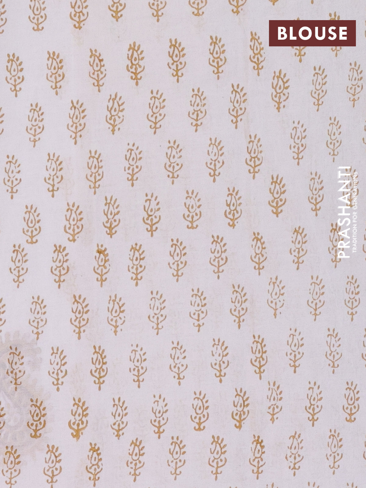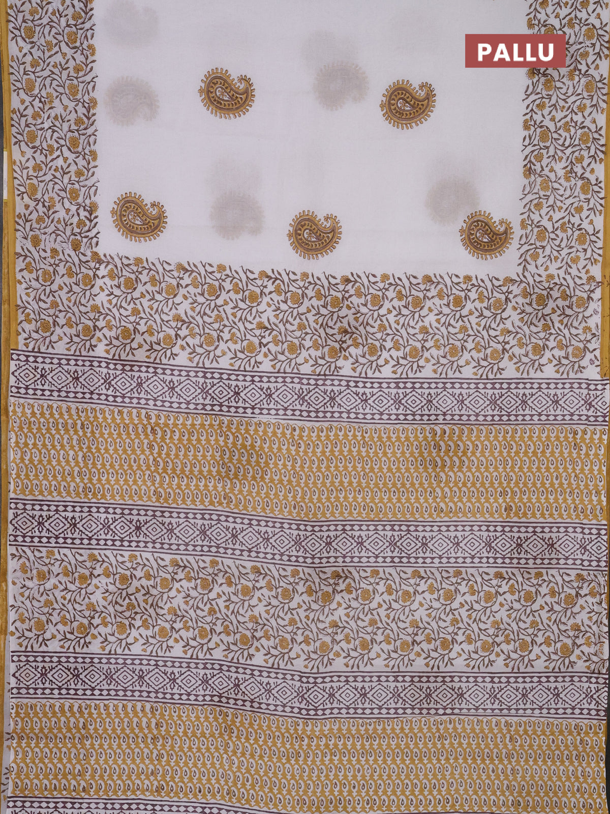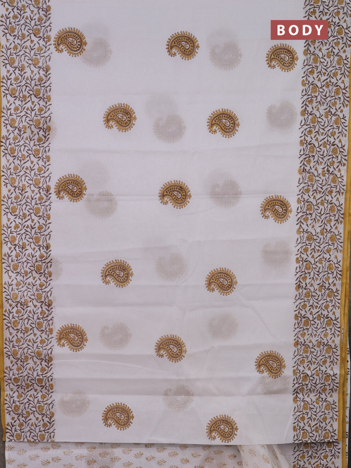 Jaipur cotton saree off white and mustard yellow with paisley butta prints and printed border