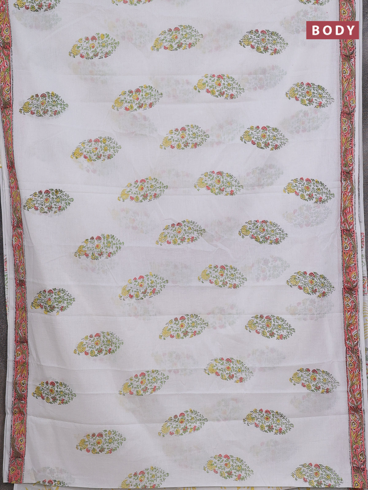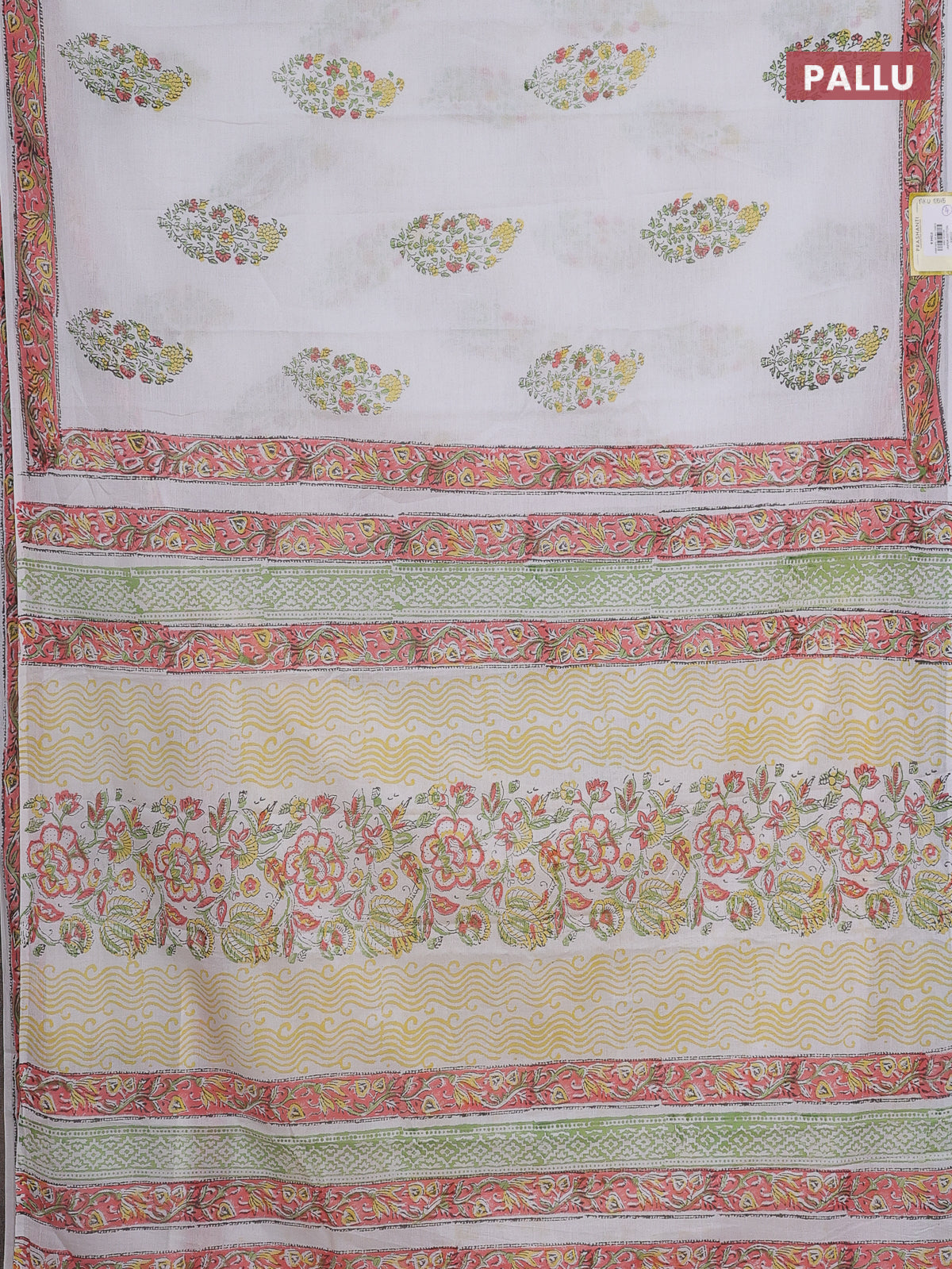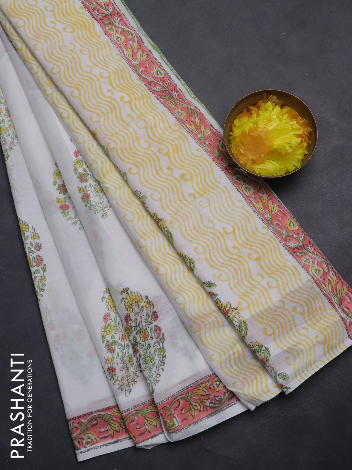 Jaipur cotton saree off white and peach orange with floral butta prints and printed border