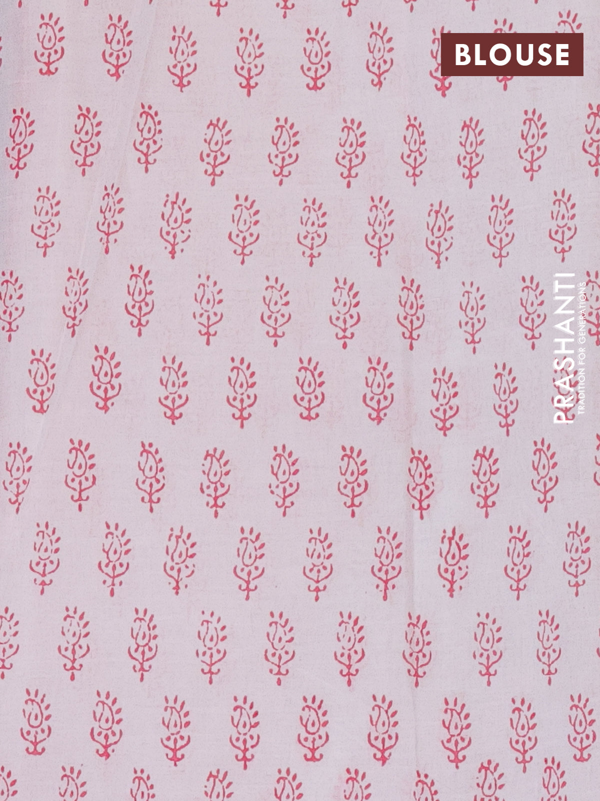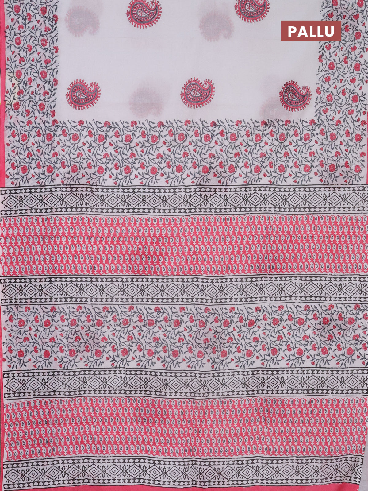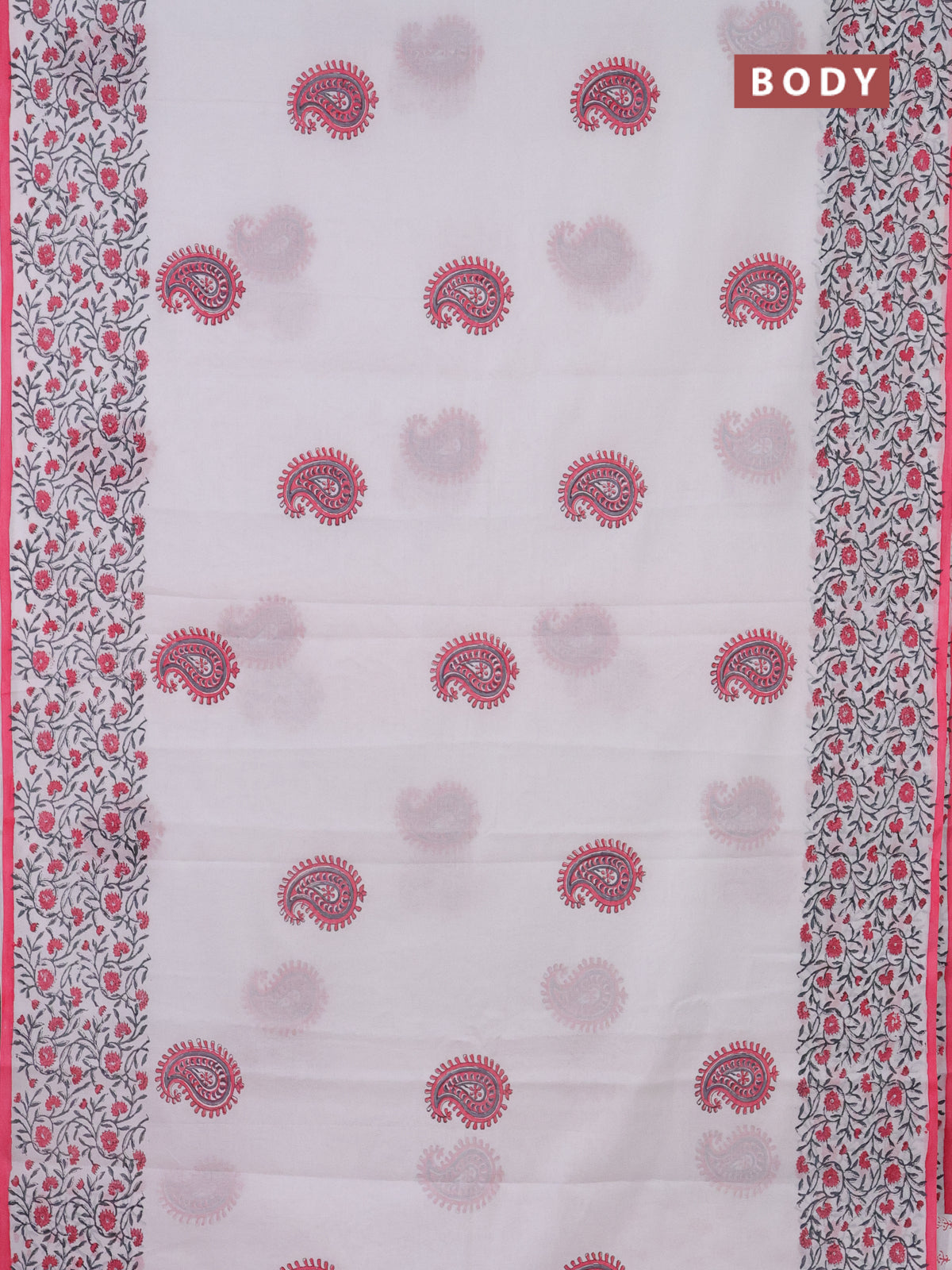 Jaipur cotton saree off white and peach pink with paisley butta prints and printed border