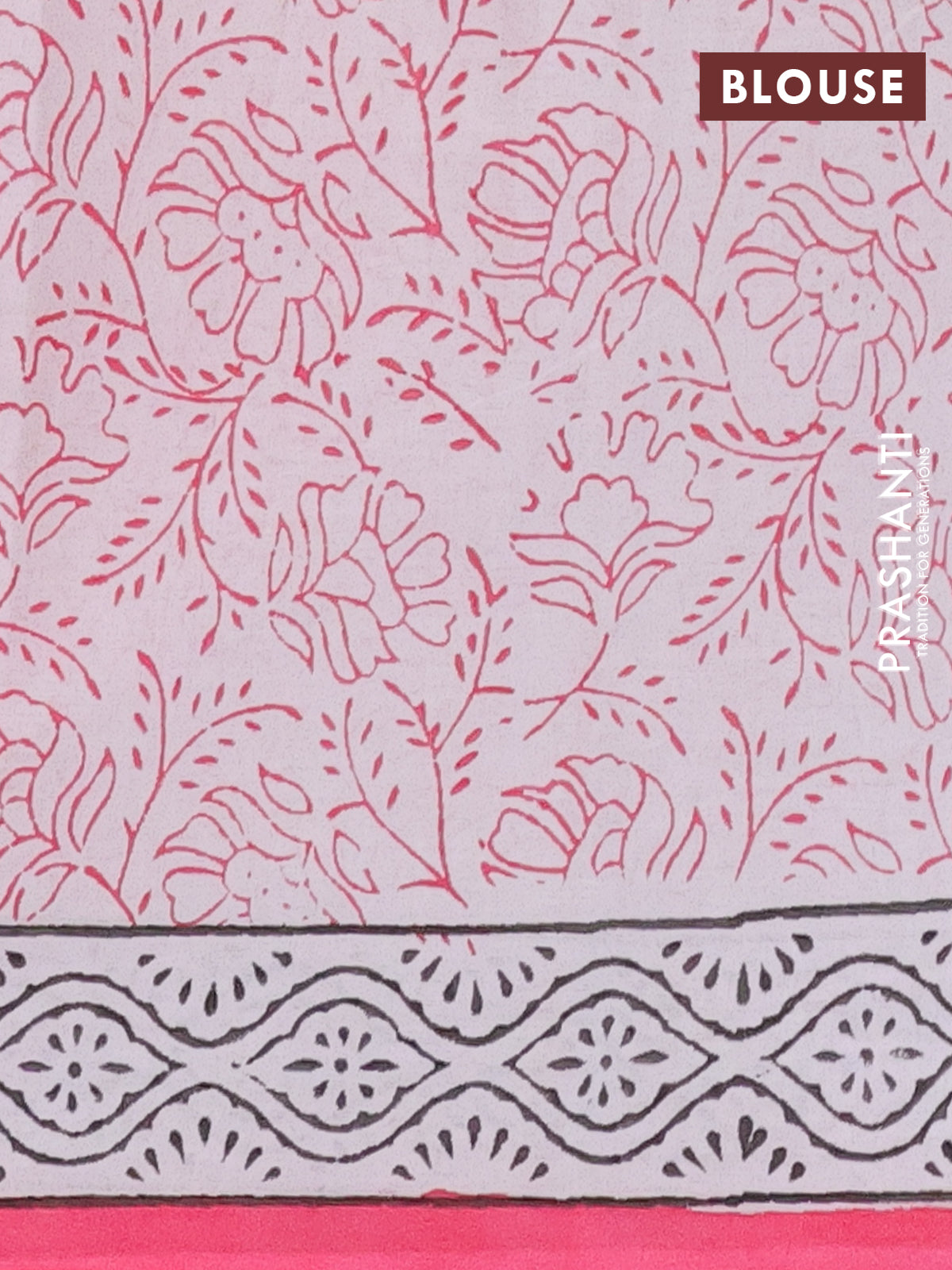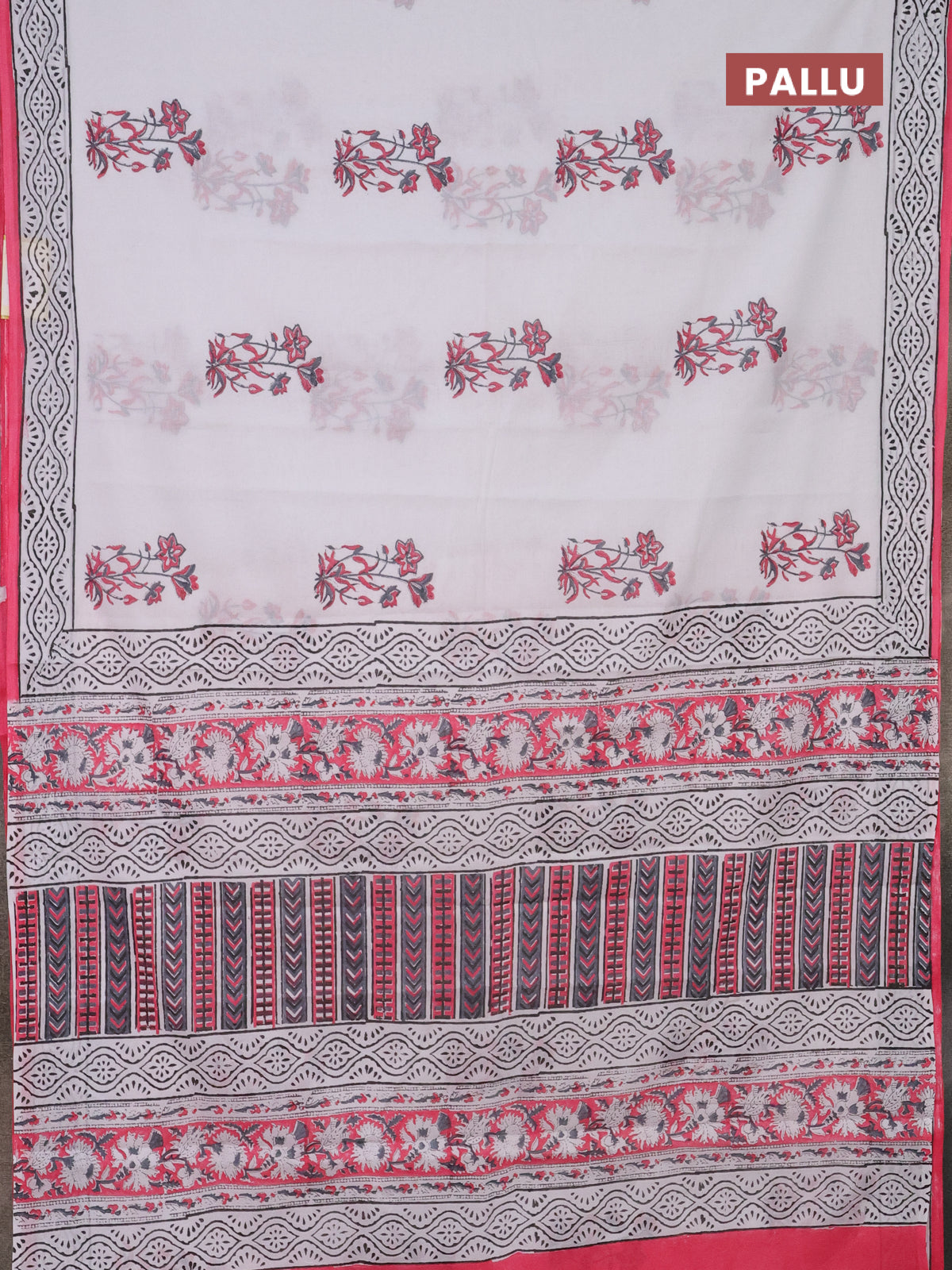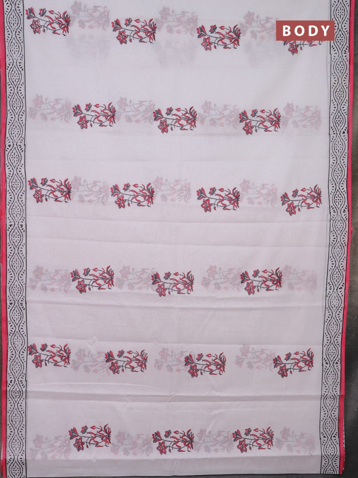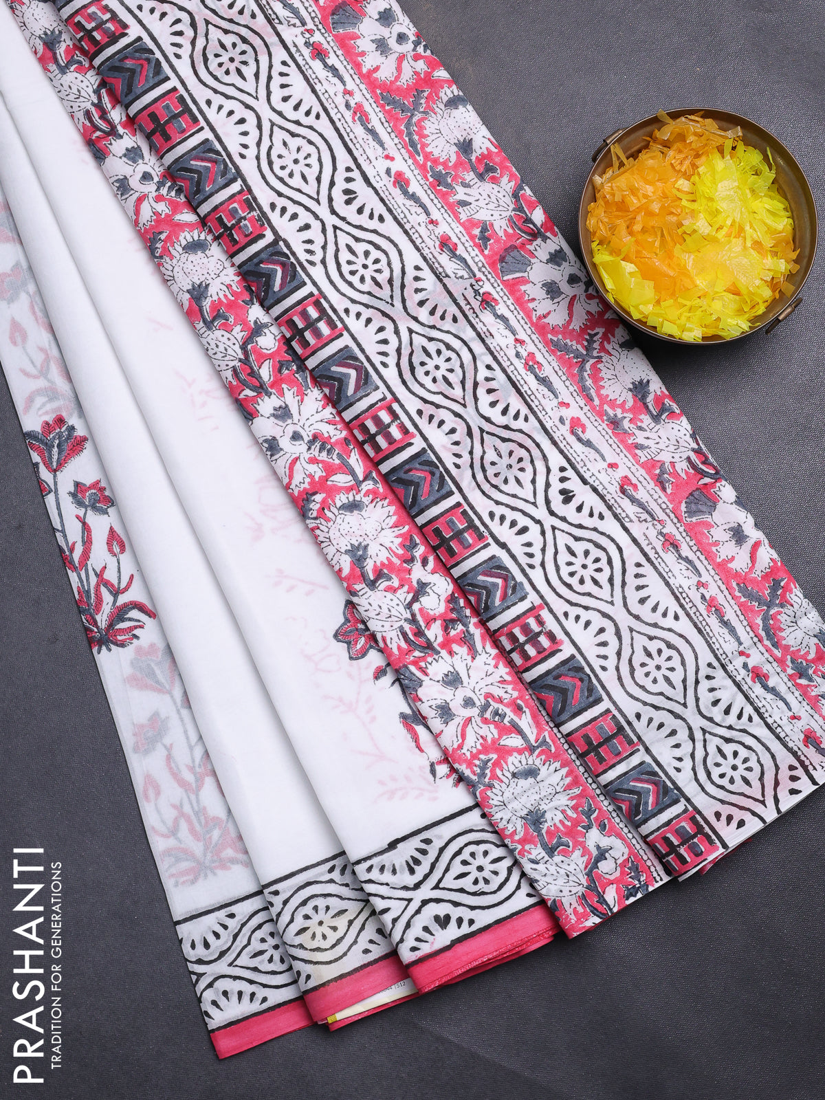 Jaipur cotton saree off white and pink with floral butta prints and printed border