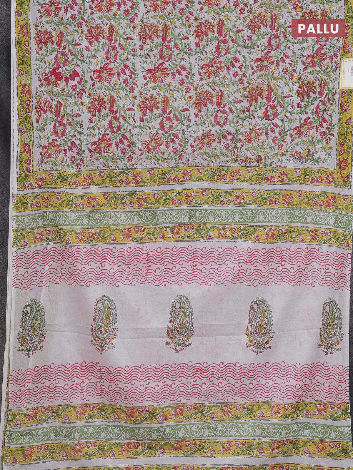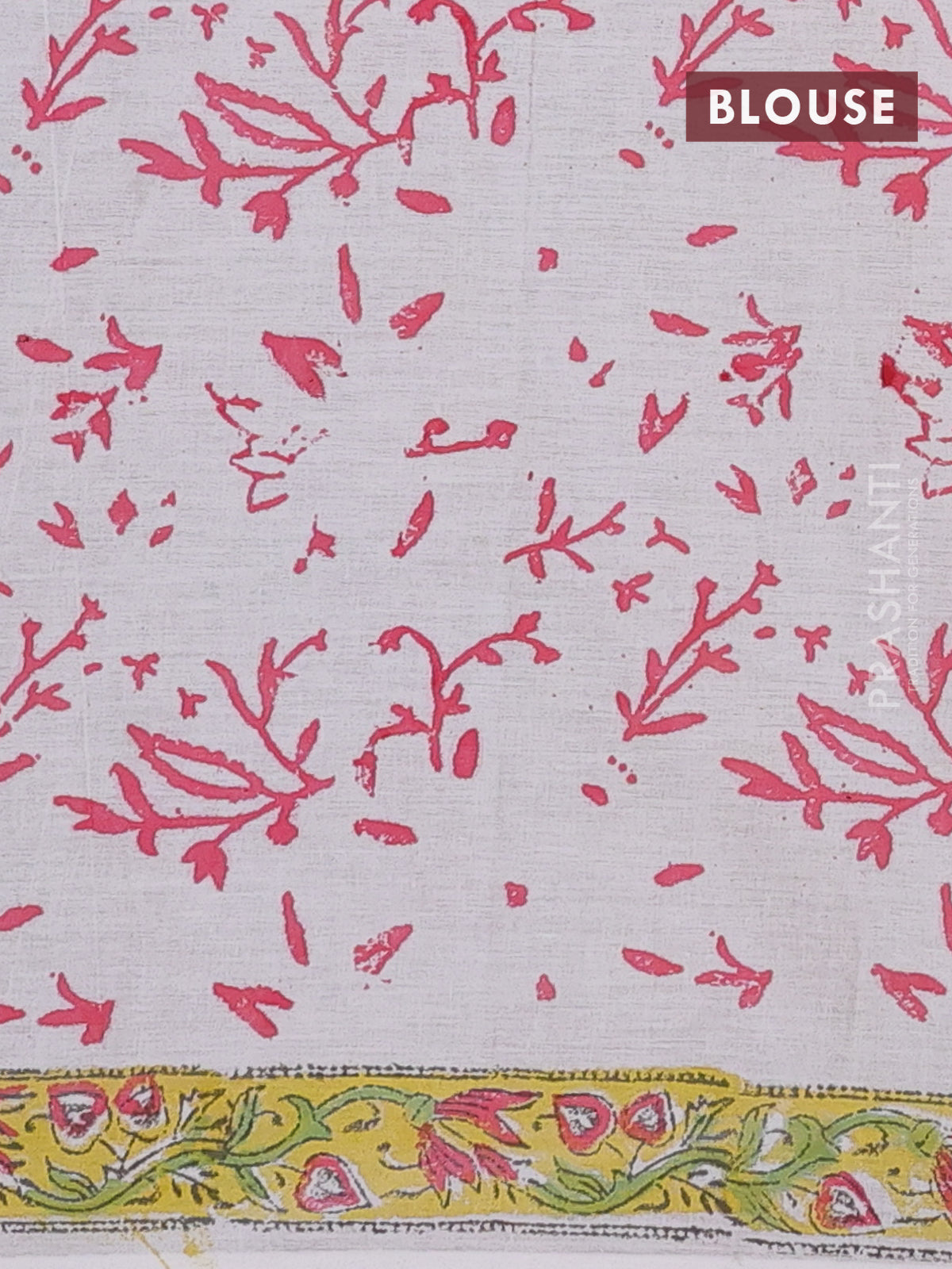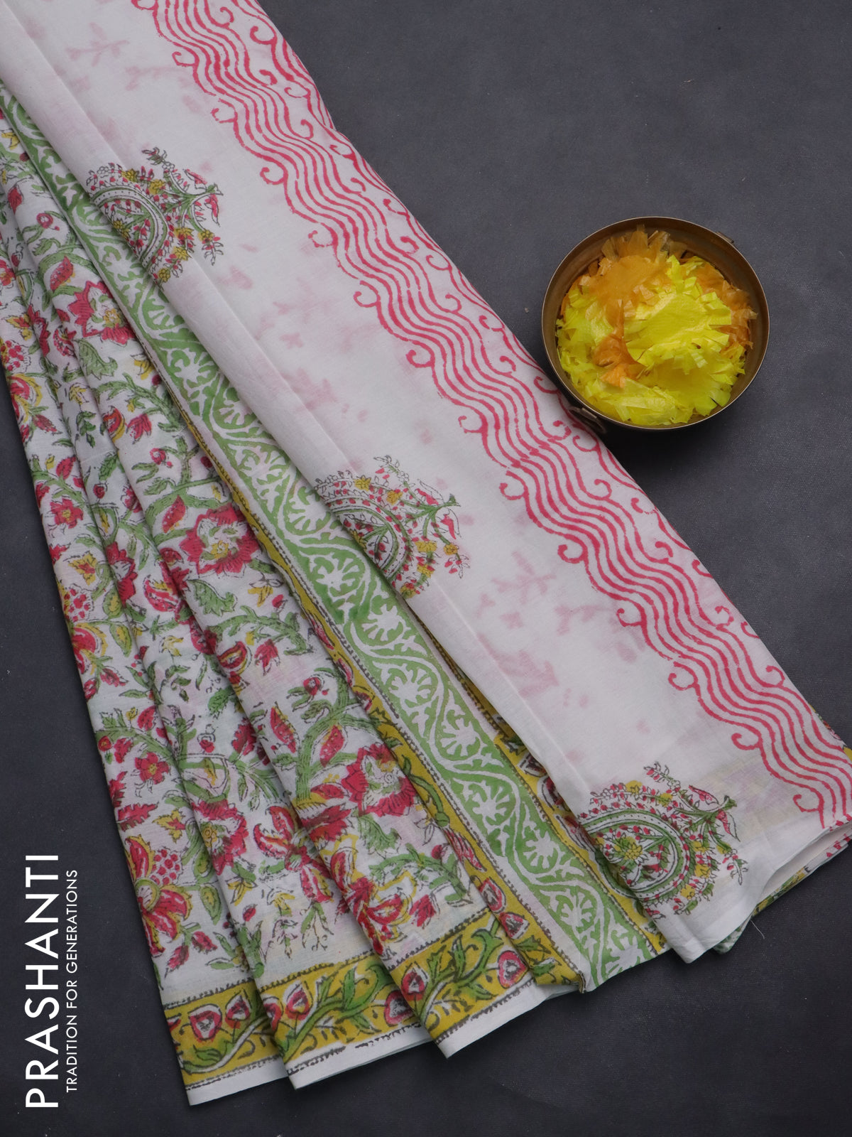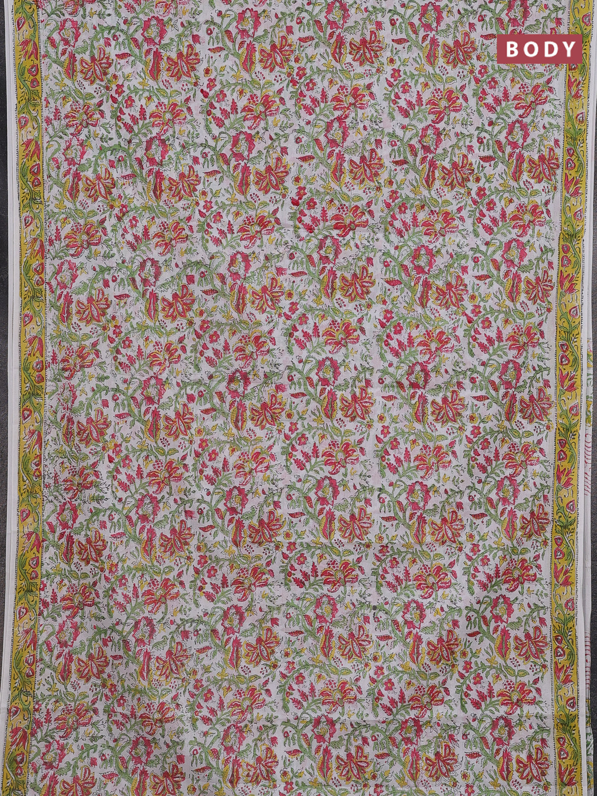 Jaipur cotton saree off white and yellow with allover floral prints and printed border