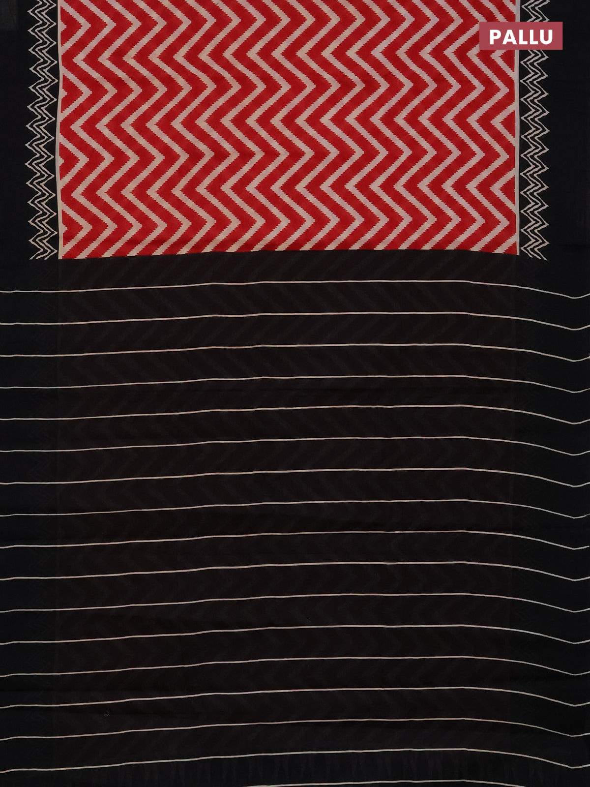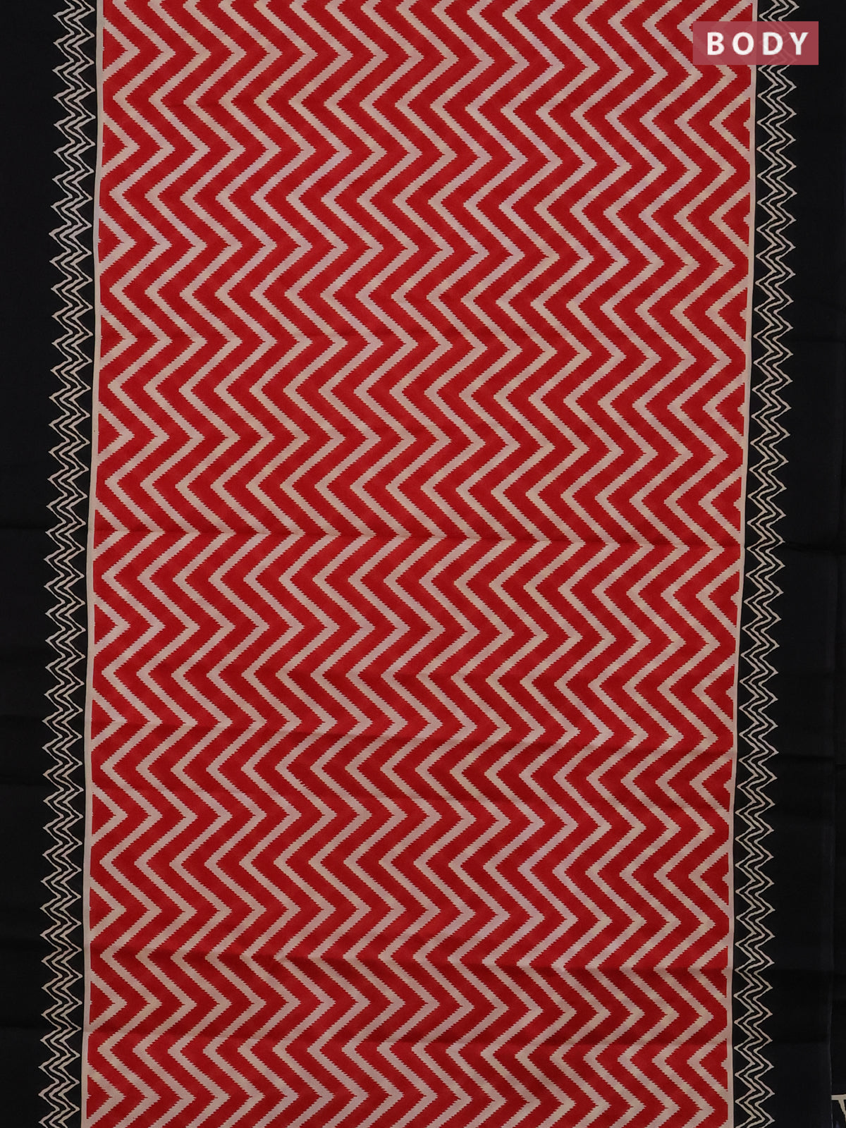Jaipur cotton saree red and black with allover zig zag prints and printed border