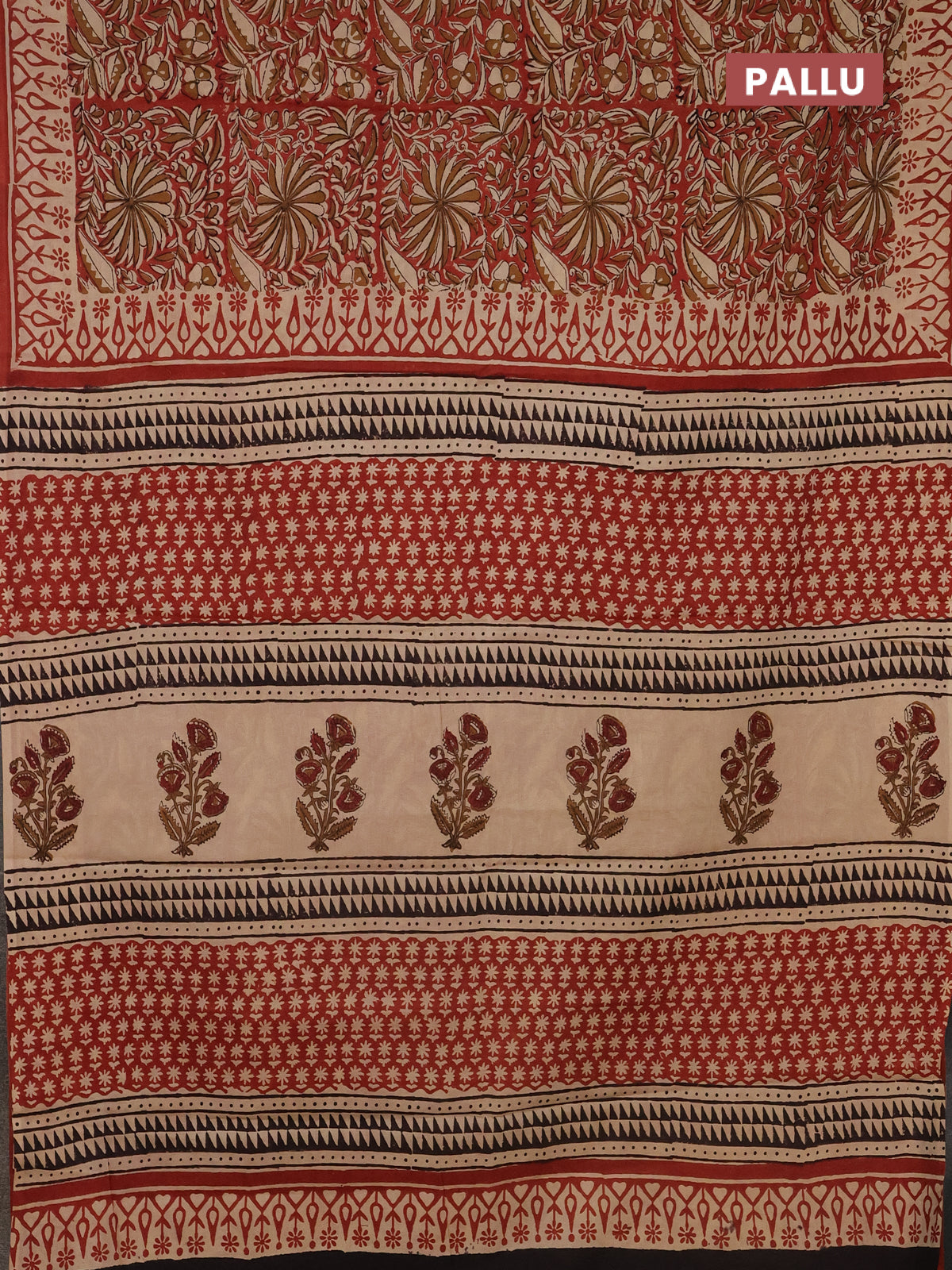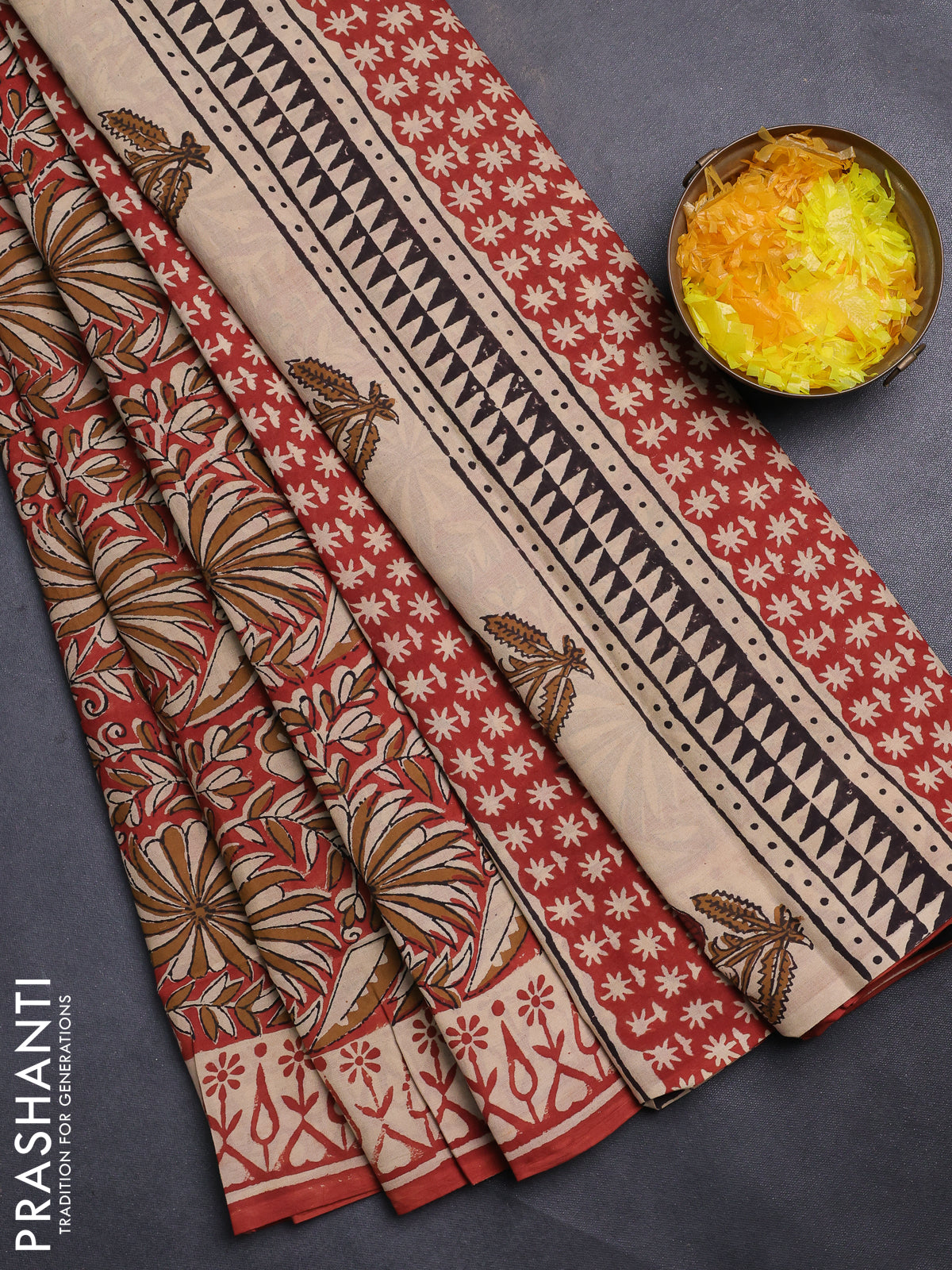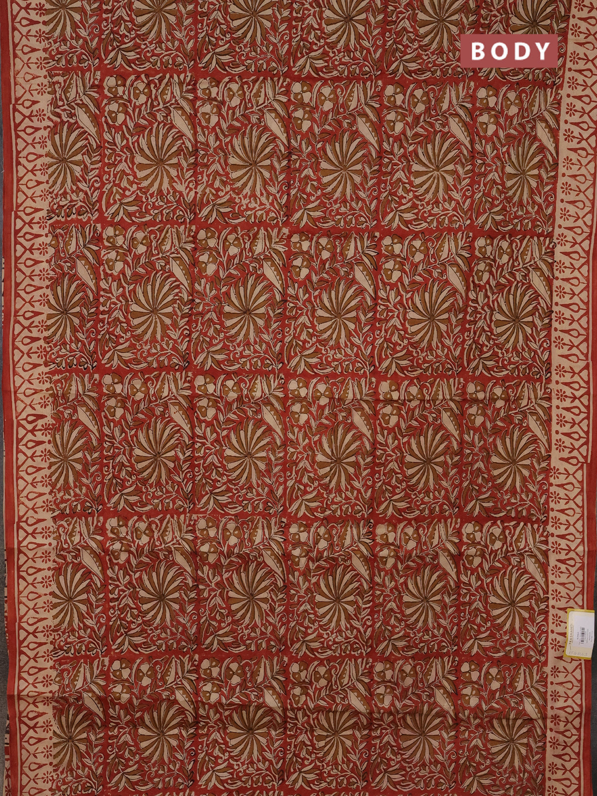 Jaipur cotton saree rust and beige with allover kalamkari prints and printed border