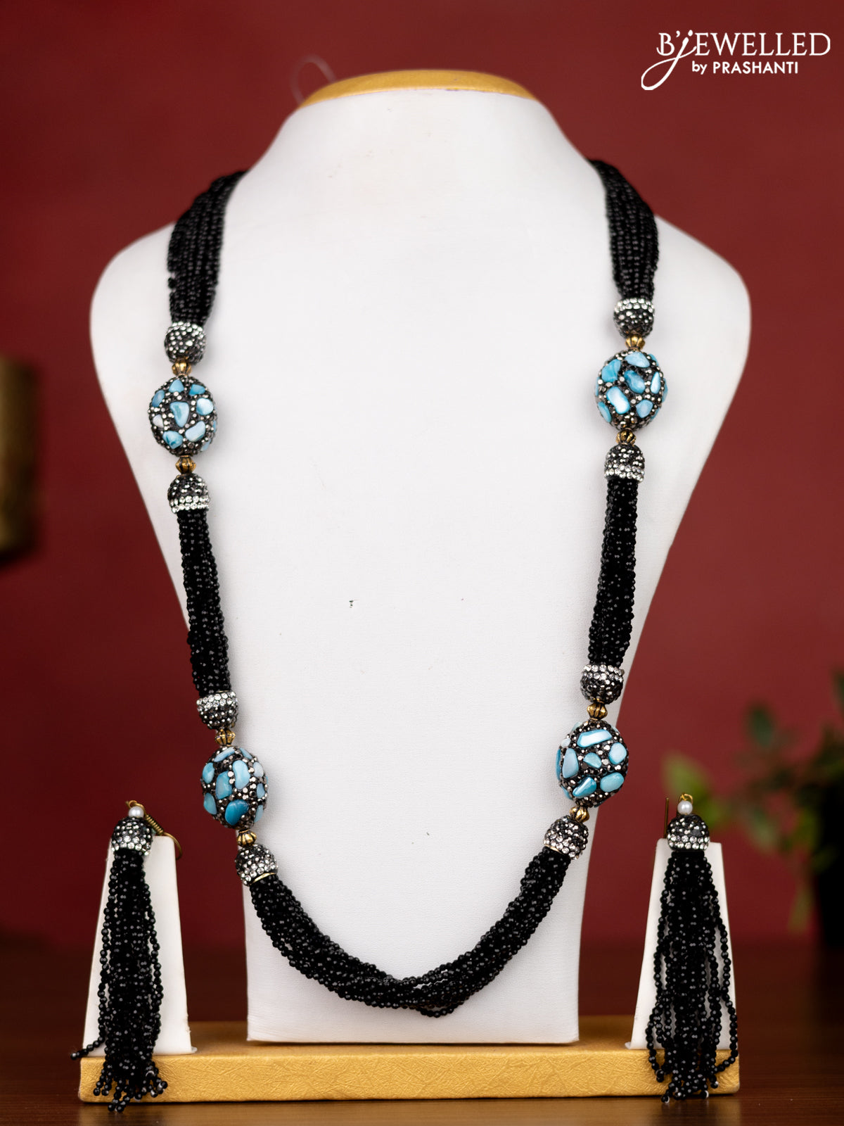 Jaipur crystal beaded black necklace with stone pendant