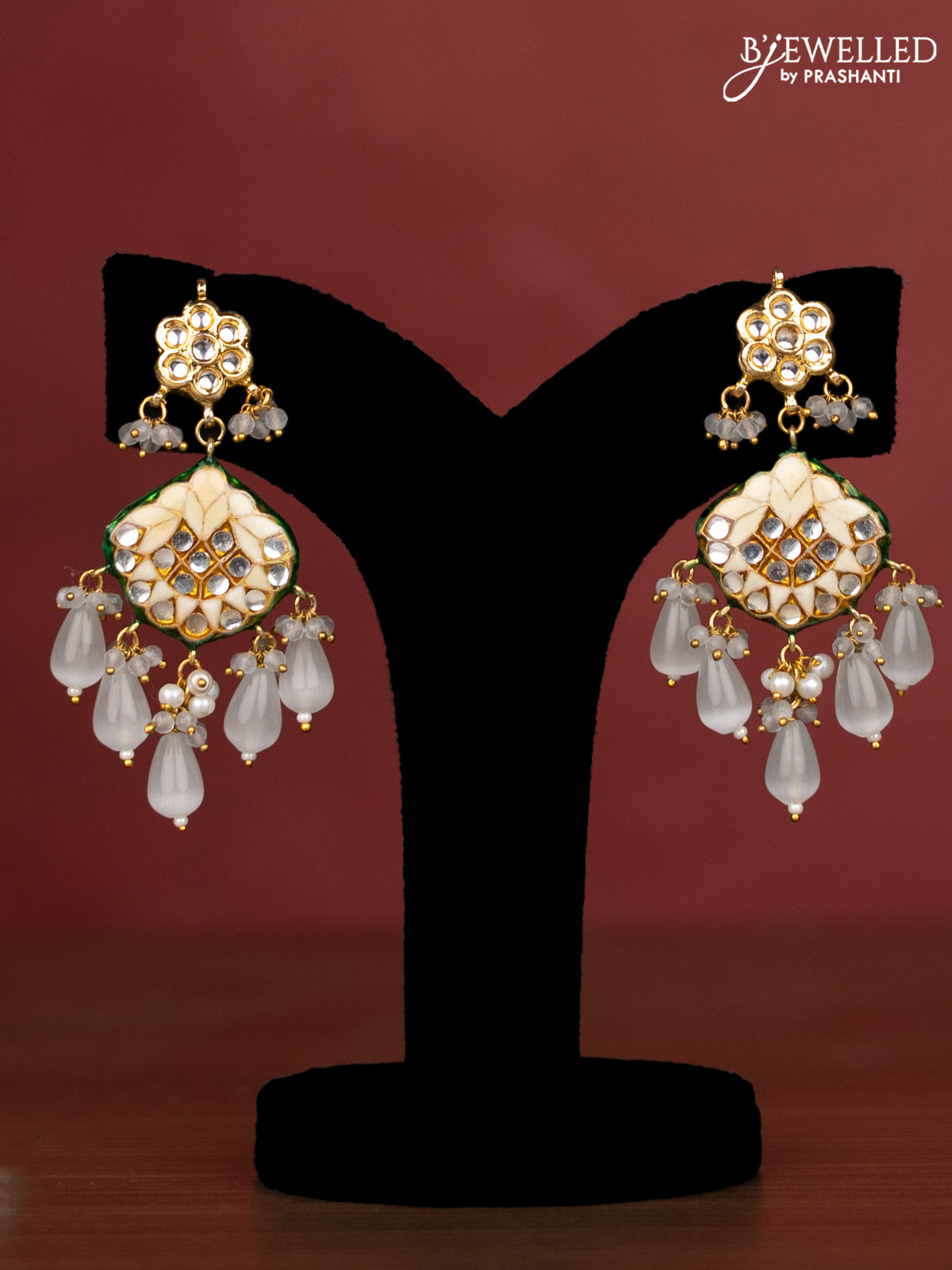 Jaipur crystal beaded dark green length necklace with minakari pendant and hangings
