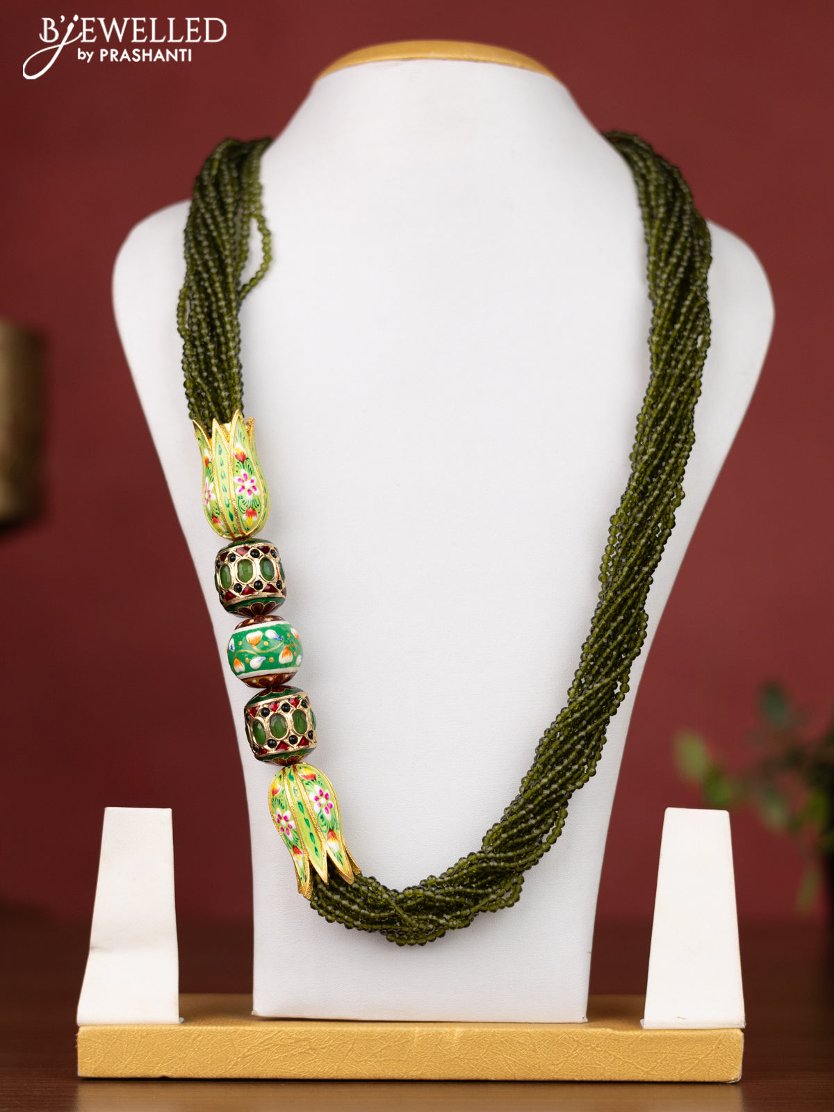 Jaipur crystal beaded green necklace with minakari balls and green stones without earrings